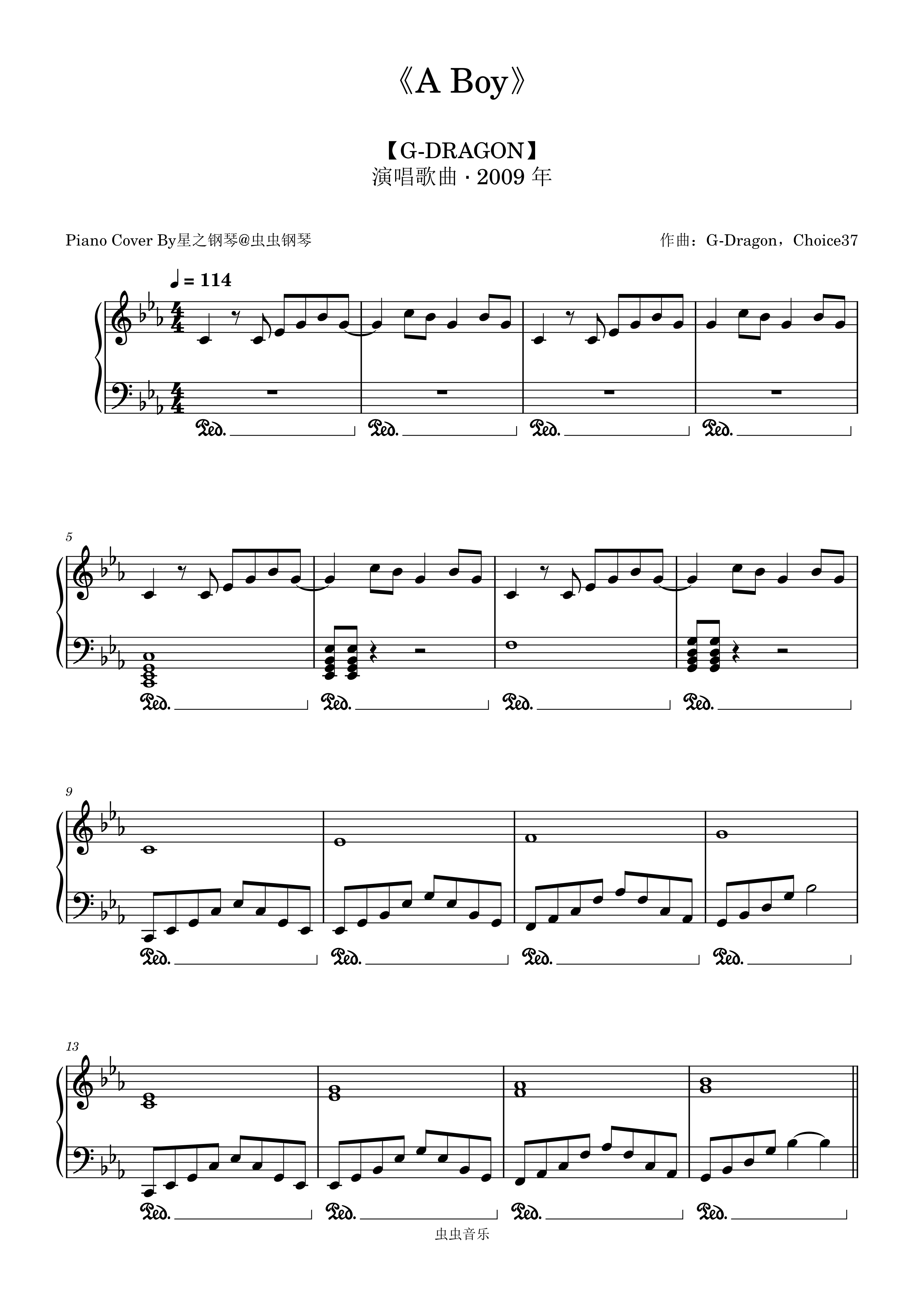 钢琴谱:【权志龙G-DRAGON】《A Boy》钢琴简单版~星之钢琴~
