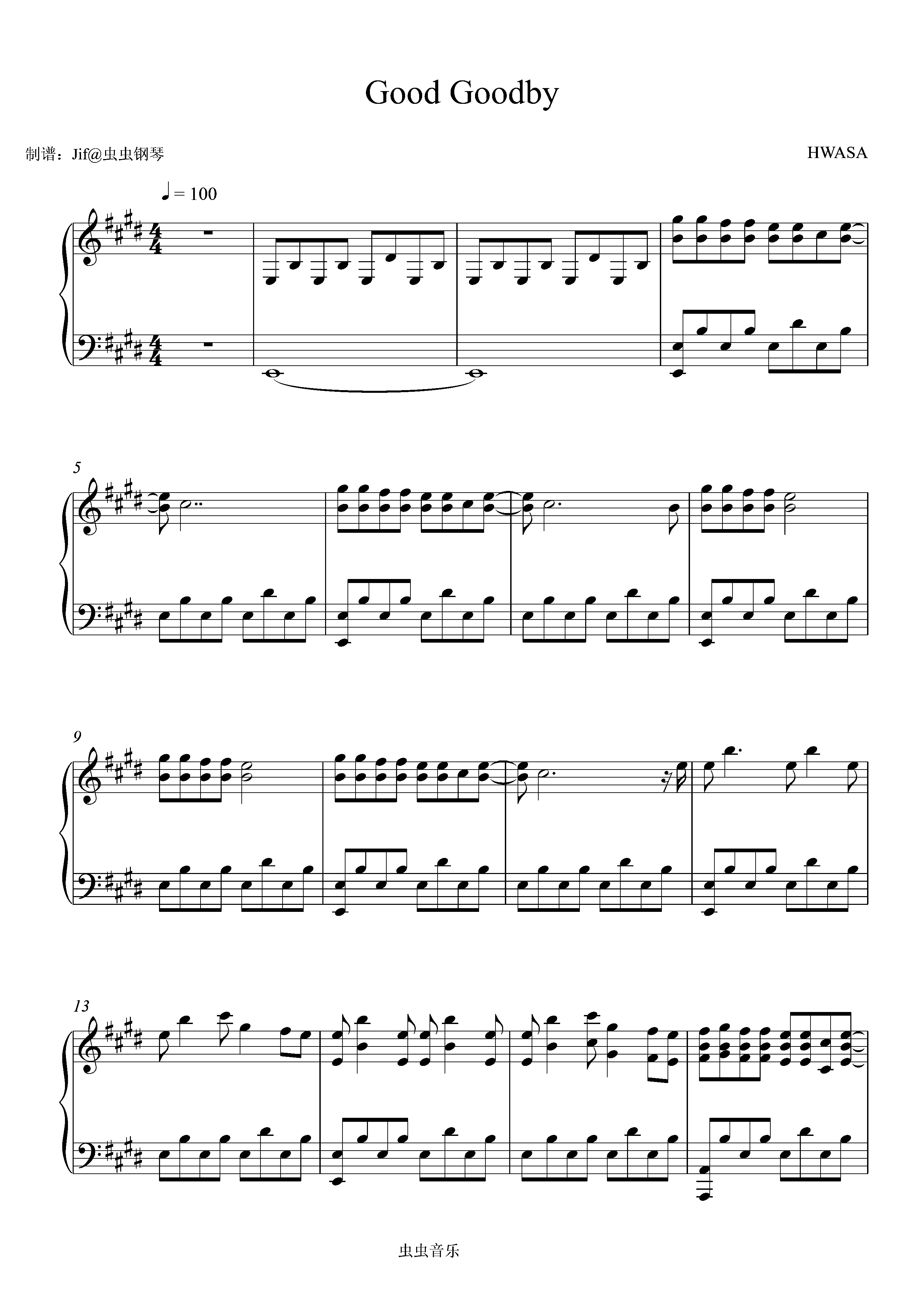 钢琴谱:Good Goodbye