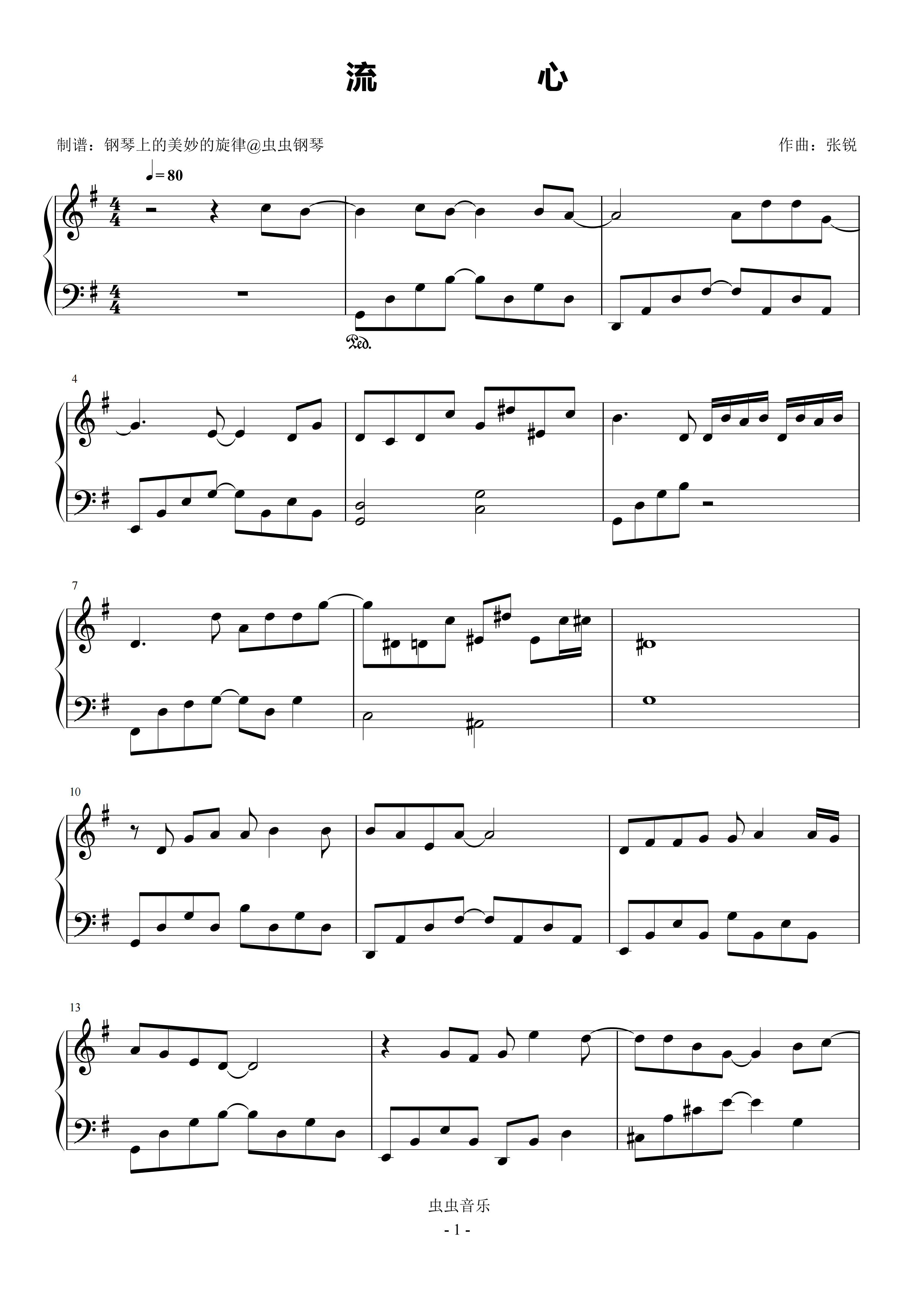 钢琴谱:流心 简易版 张碧晨 骄阳似我