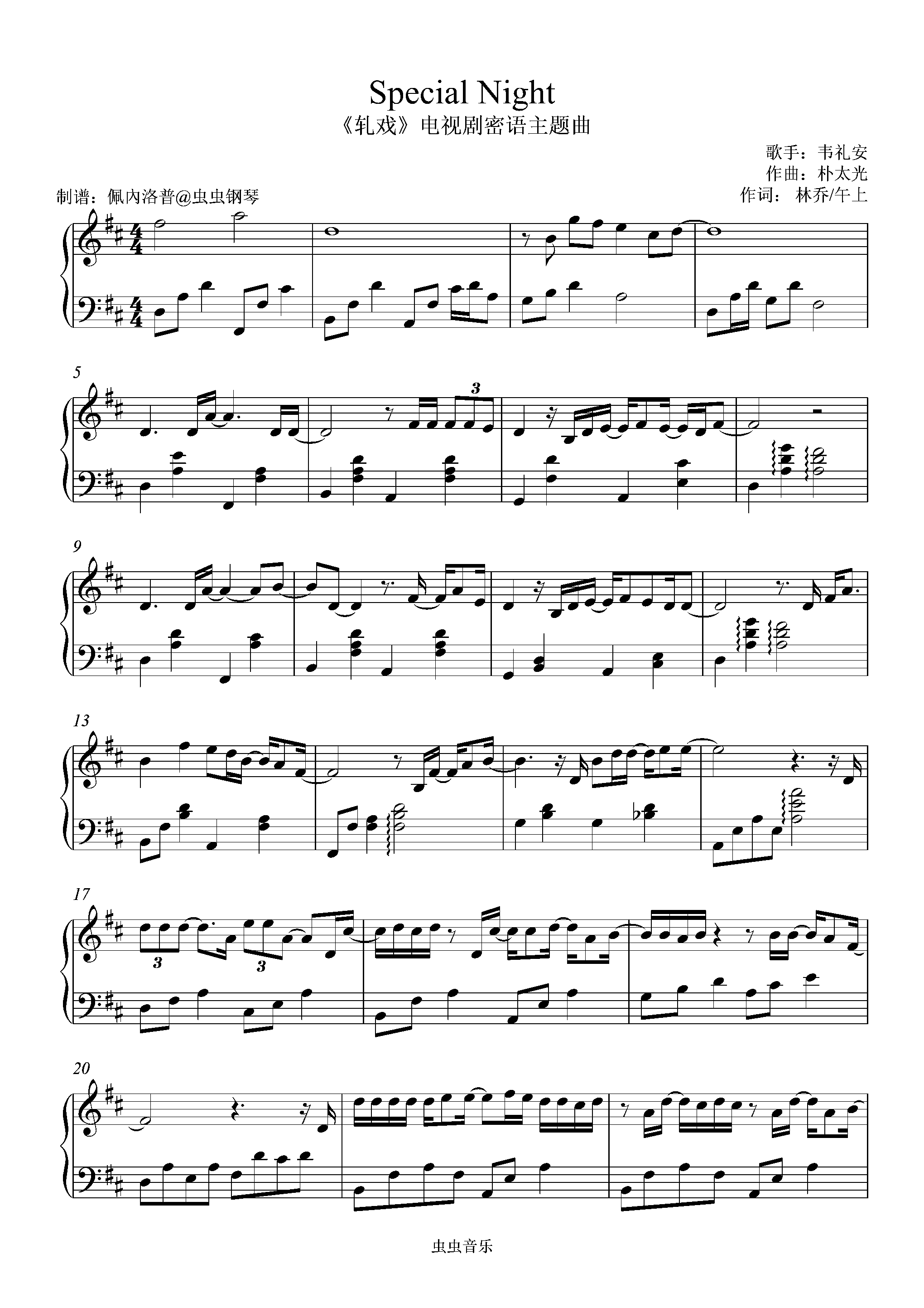 钢琴谱:Special Night-《轧戏》密语主题曲