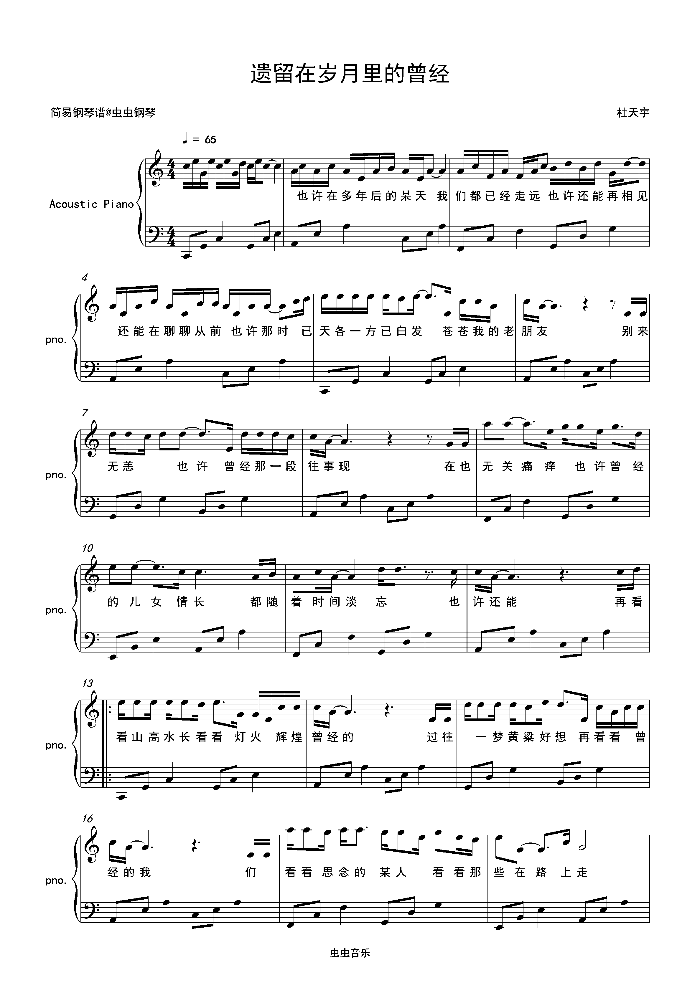 钢琴谱:遗留在岁月里的曾经-杜天宇 C调独奏