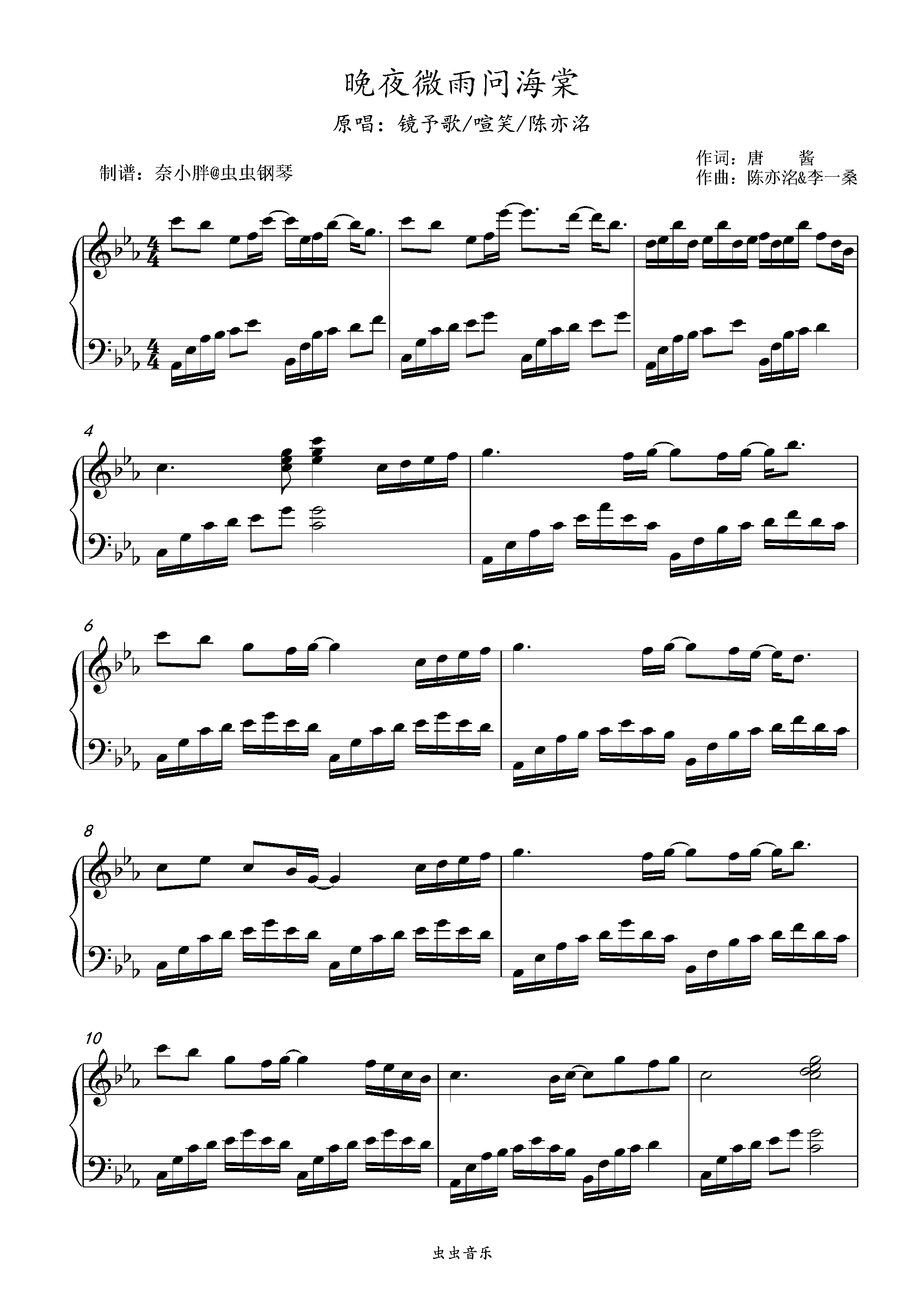 晚夜微雨问海棠钢琴简谱 数字双手 唐酱