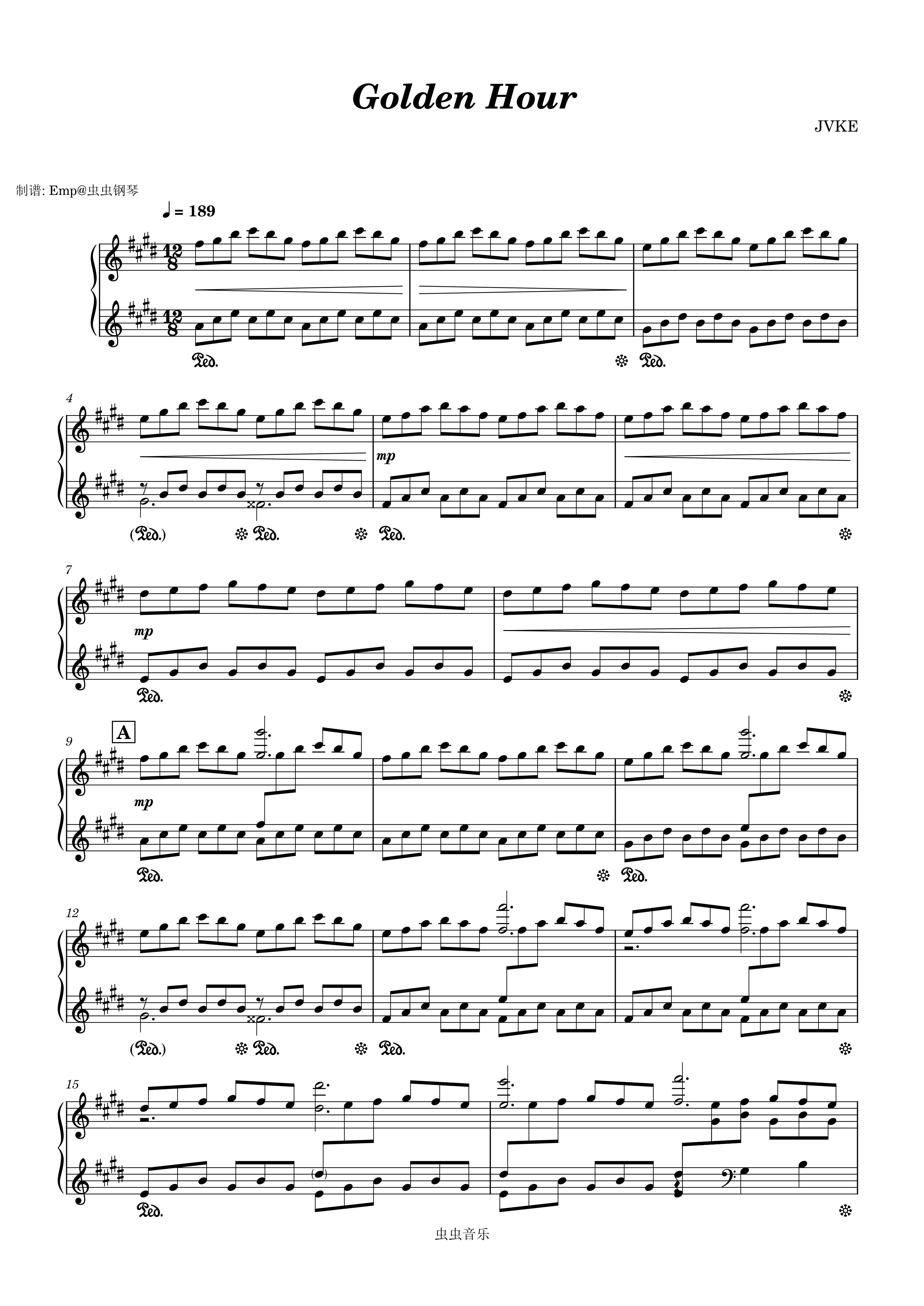 • golden hour钢琴简谱 E调 数字双手