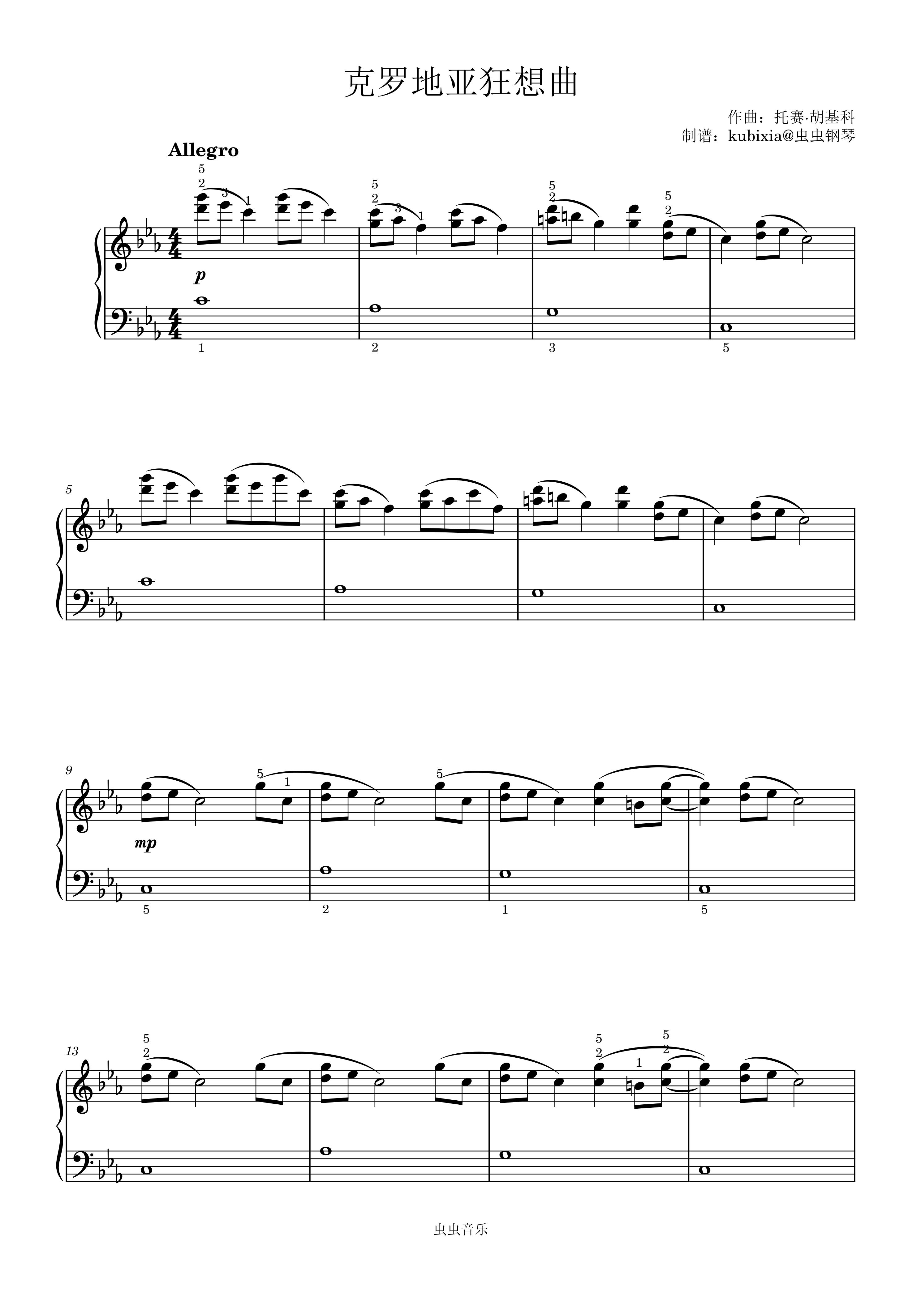 • Croatian Rhapsody钢琴简谱 c调 数字双手