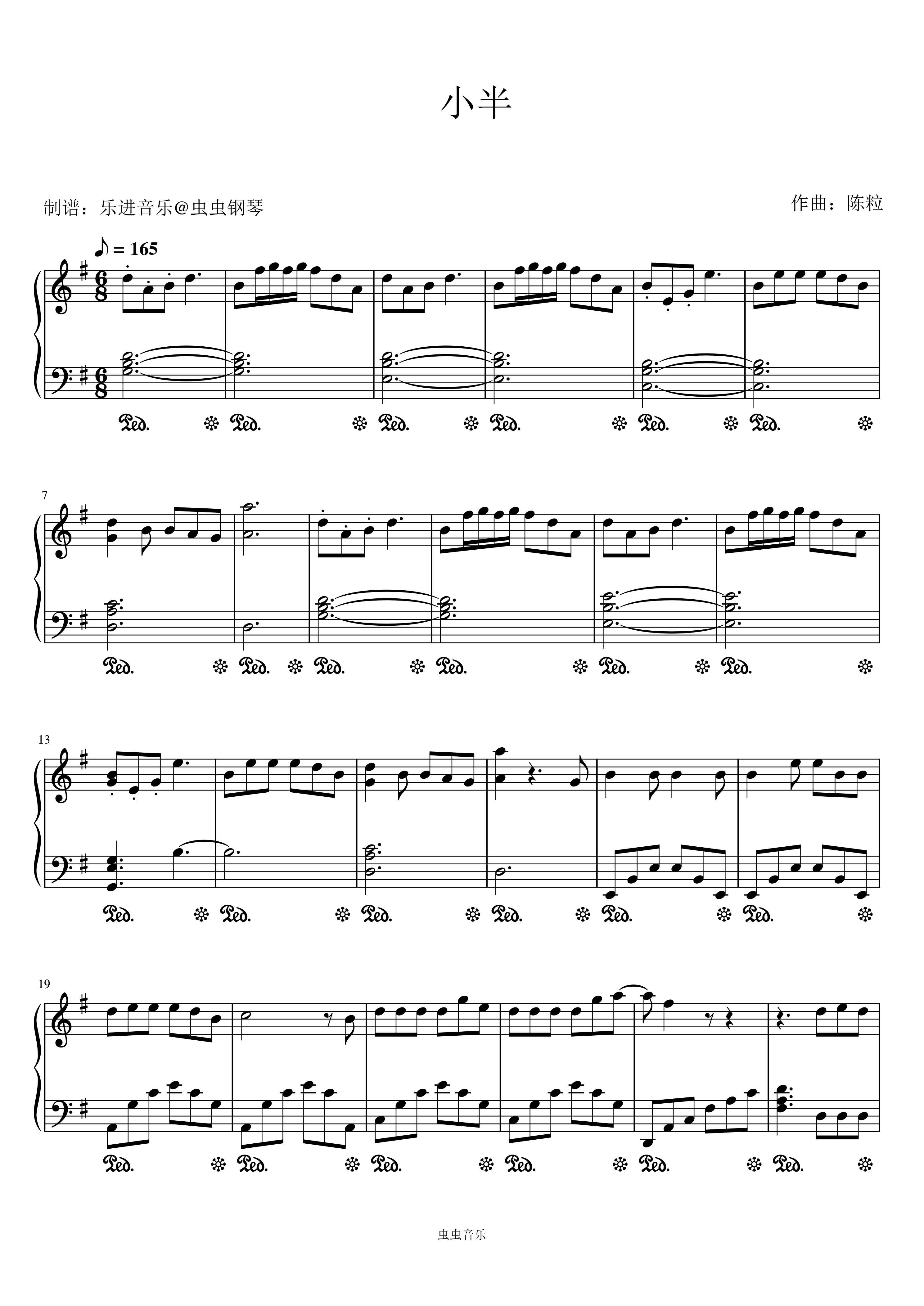 • 小半钢琴简谱 G调 数字双手 陈粒