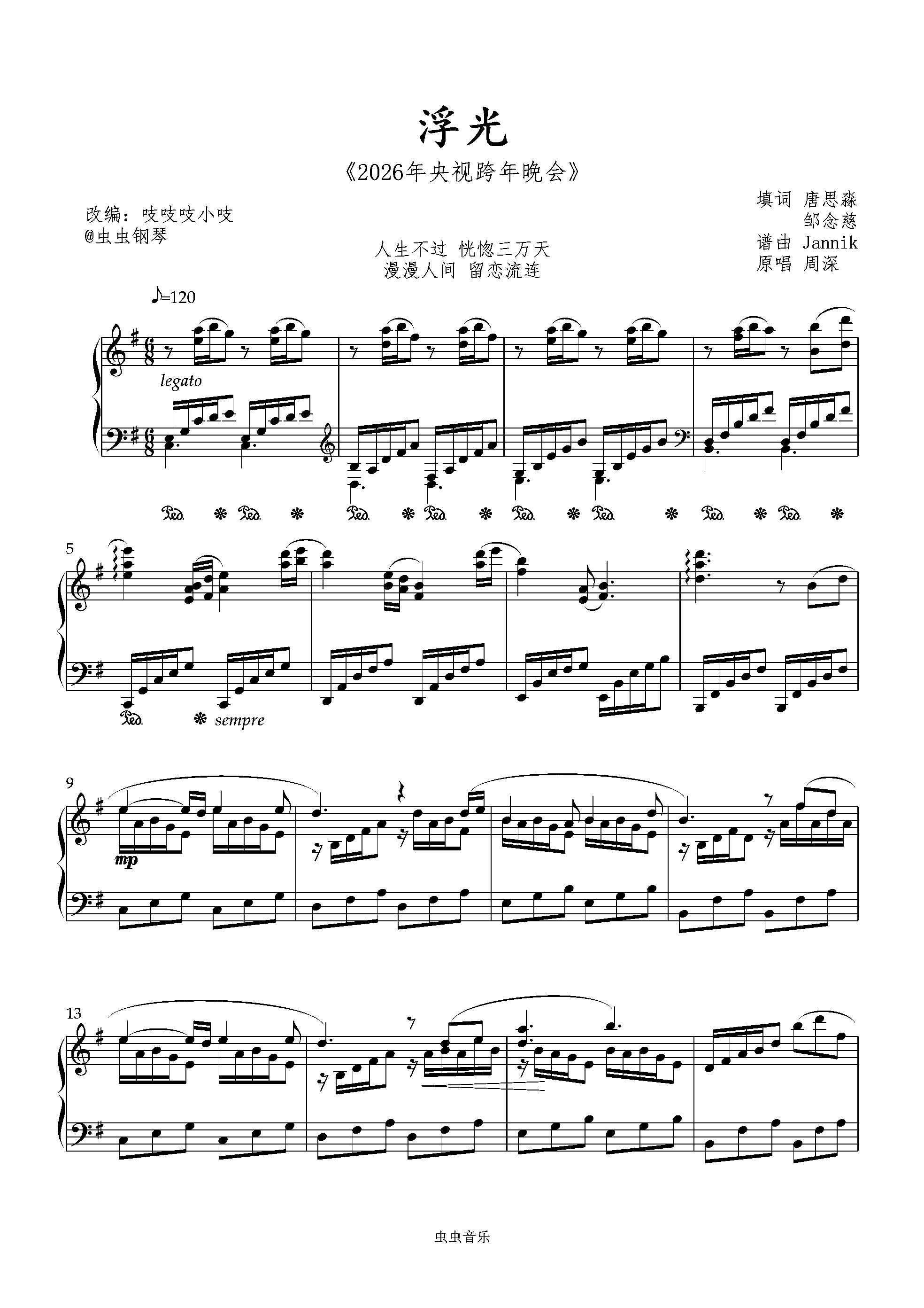 钢琴谱:浮光 「空灵、恢弘」周深 e小调演奏 跨年晚会 吱吱编配