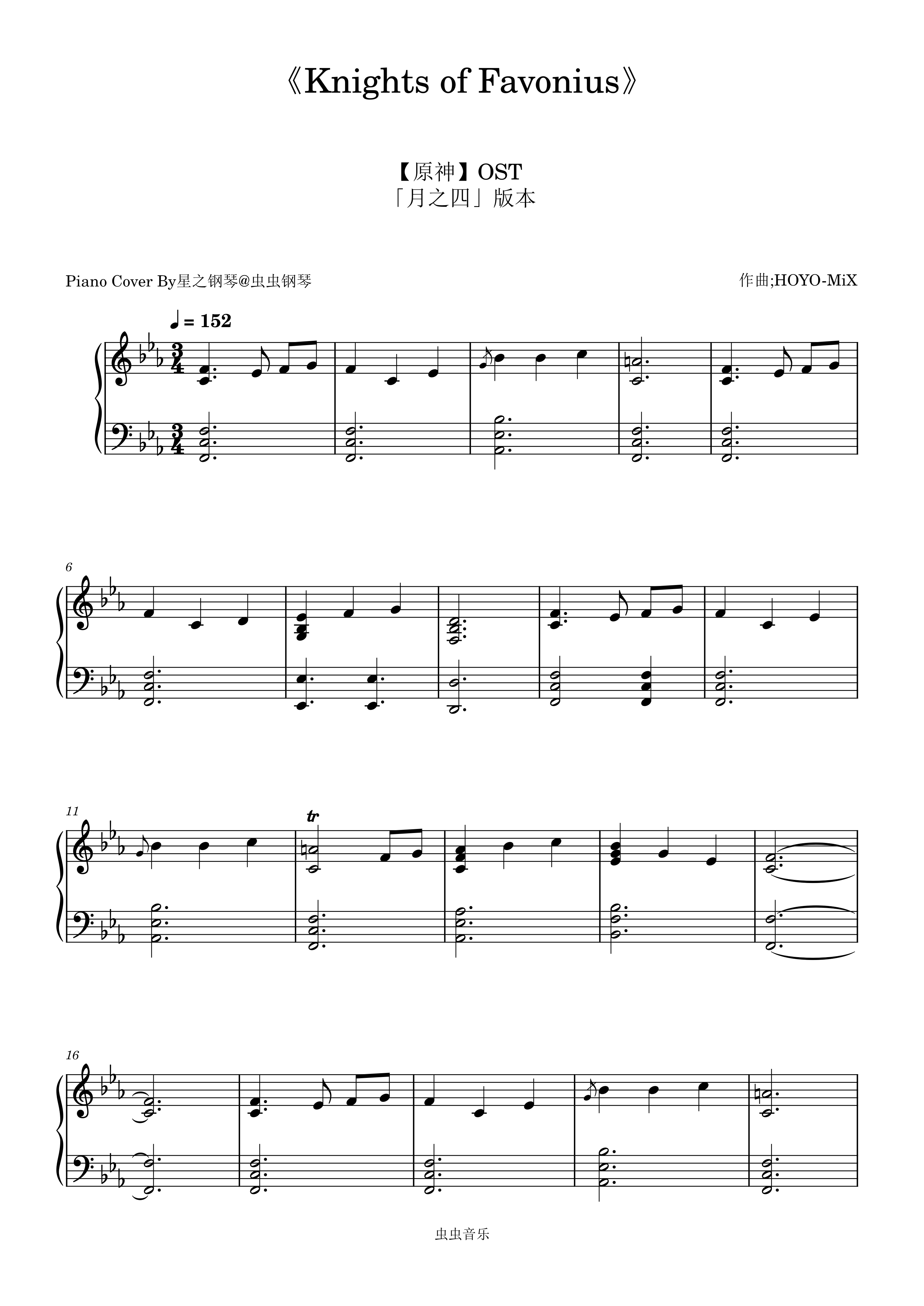 钢琴谱:【原神】月之四《Knights of Favonius》钢琴独奏版~星之钢琴~