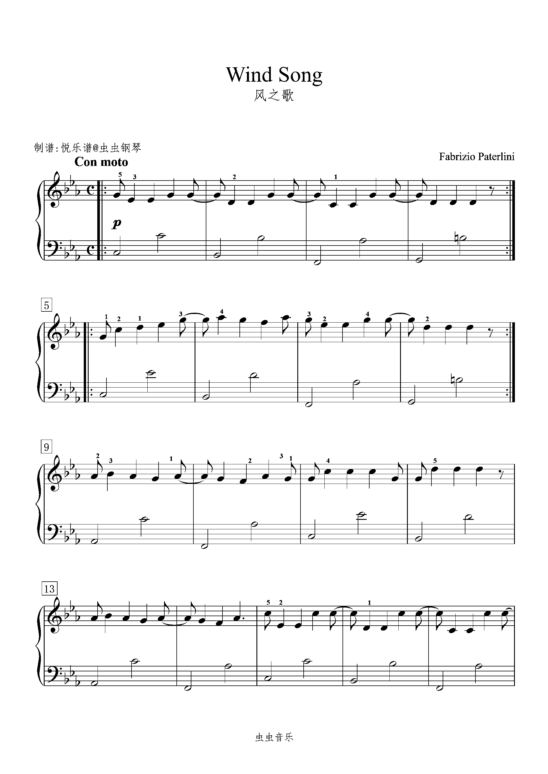 Wind Song钢琴简谱 数字双手