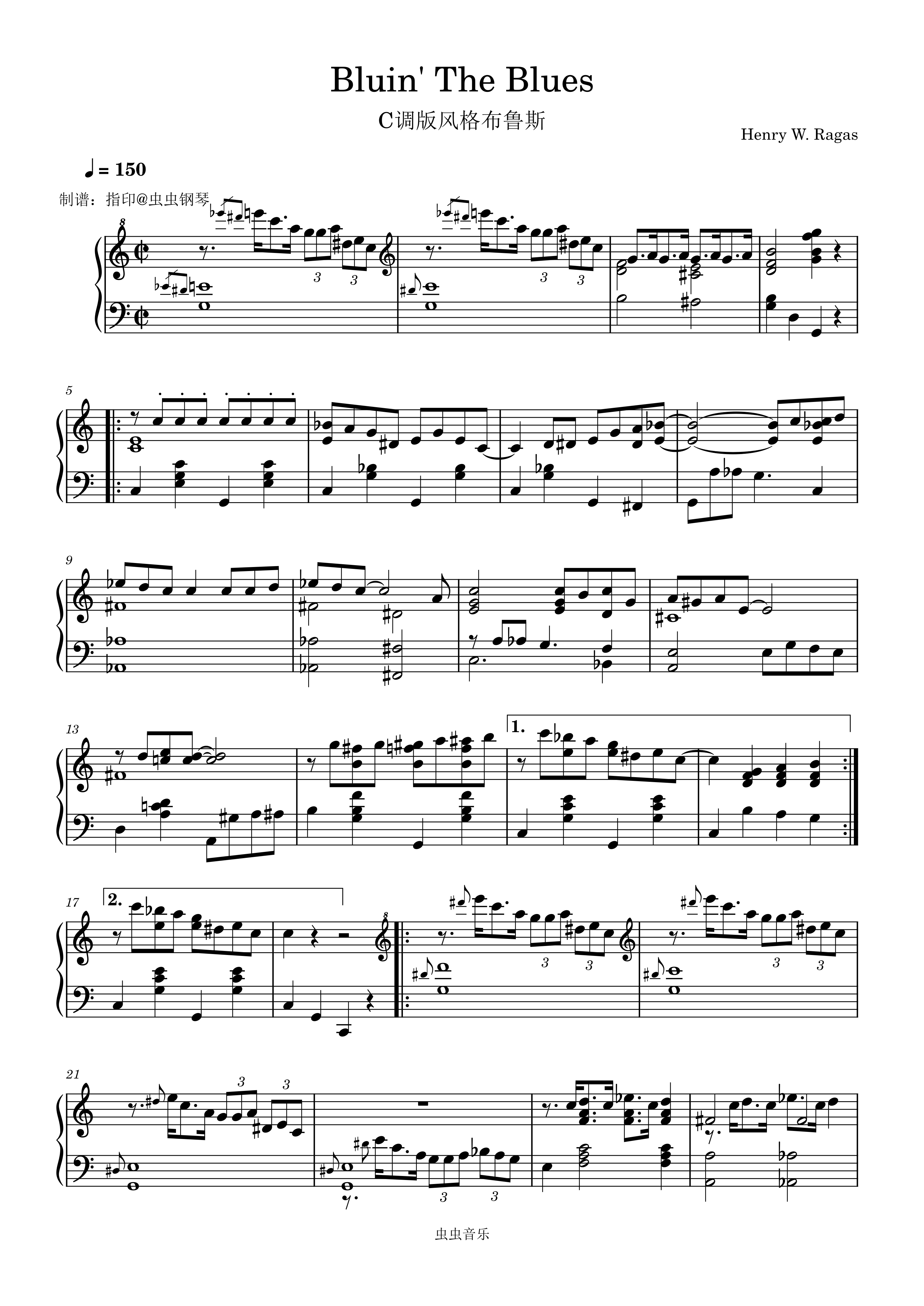 钢琴谱:C调版布鲁斯风格《Bluin' The Blues》