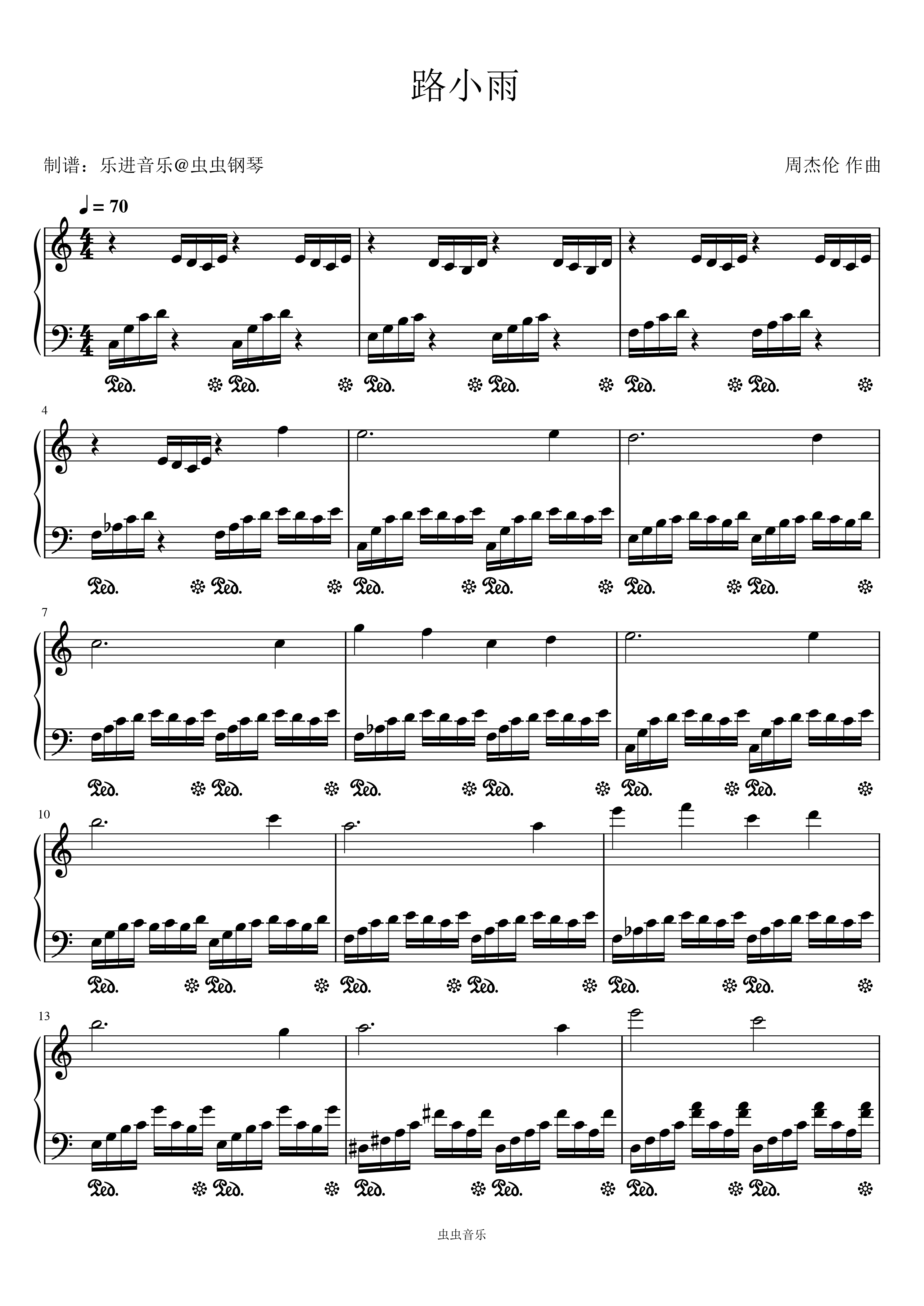 钢琴谱:《路小雨》还原版