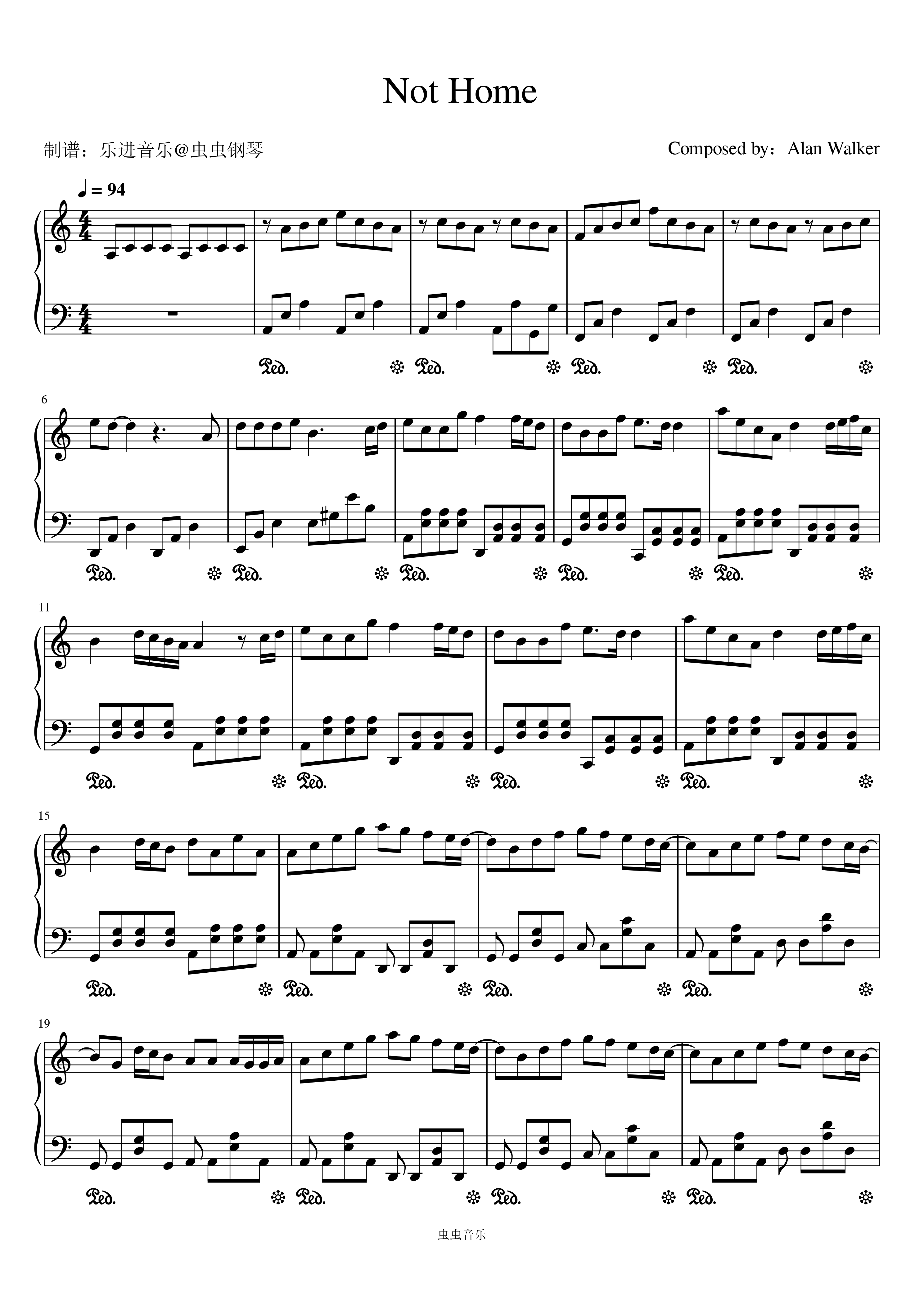 钢琴谱:《Not Home》C调