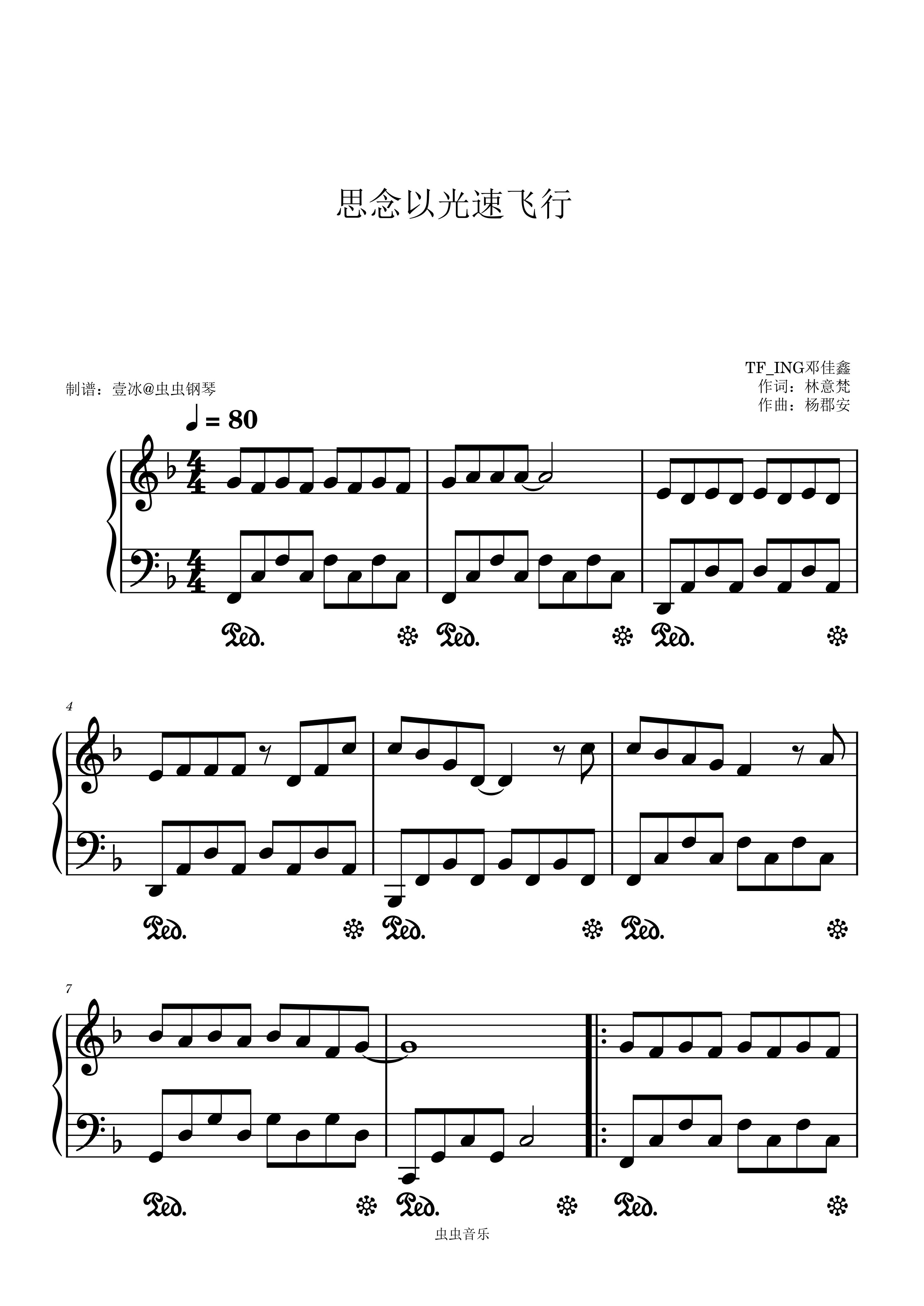 钢琴谱:思念以光速飞行 - TF_ING邓佳鑫 原调