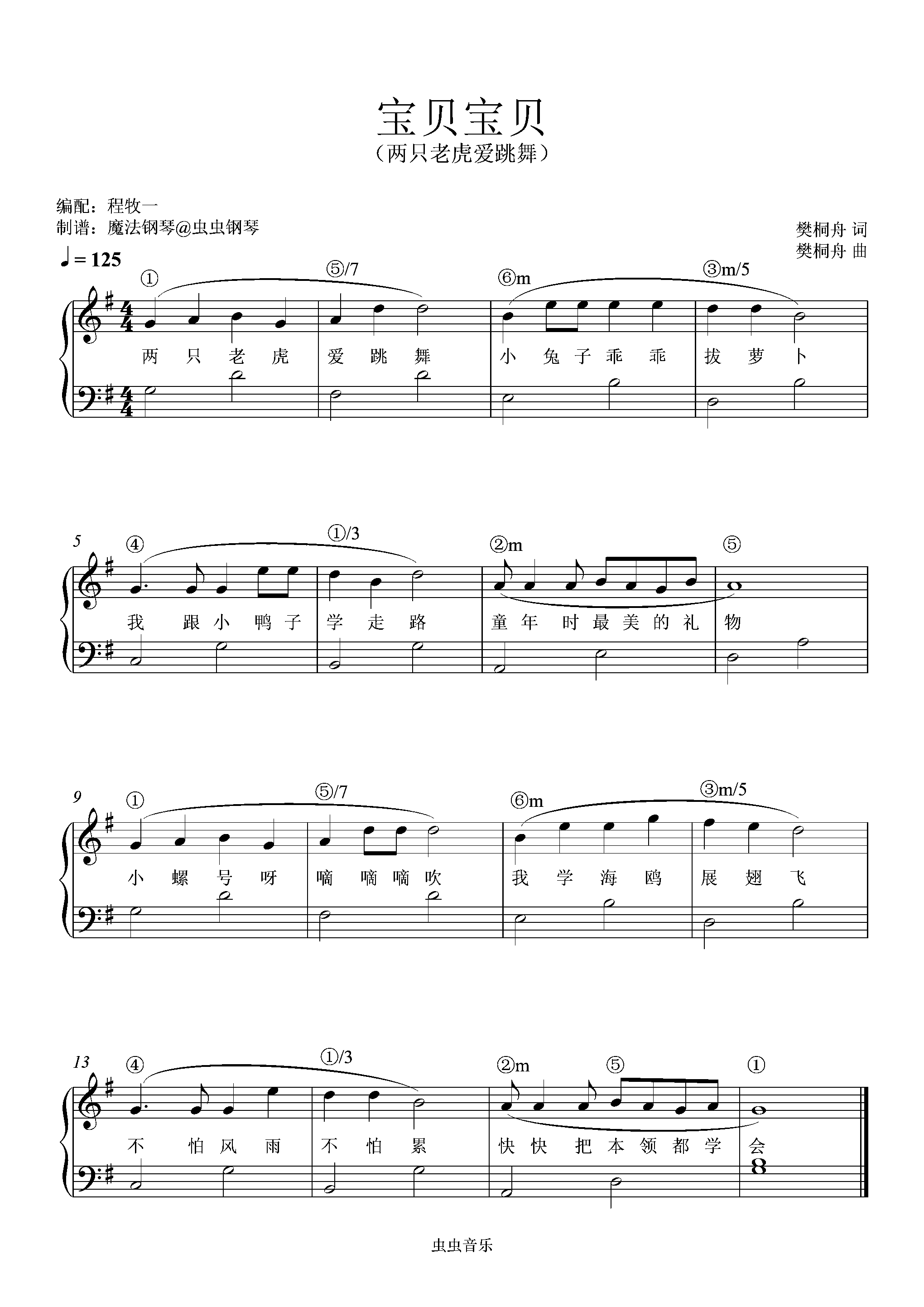 宝贝宝贝(两只老虎爱跳舞)钢琴简谱 数字双手 樊桐舟