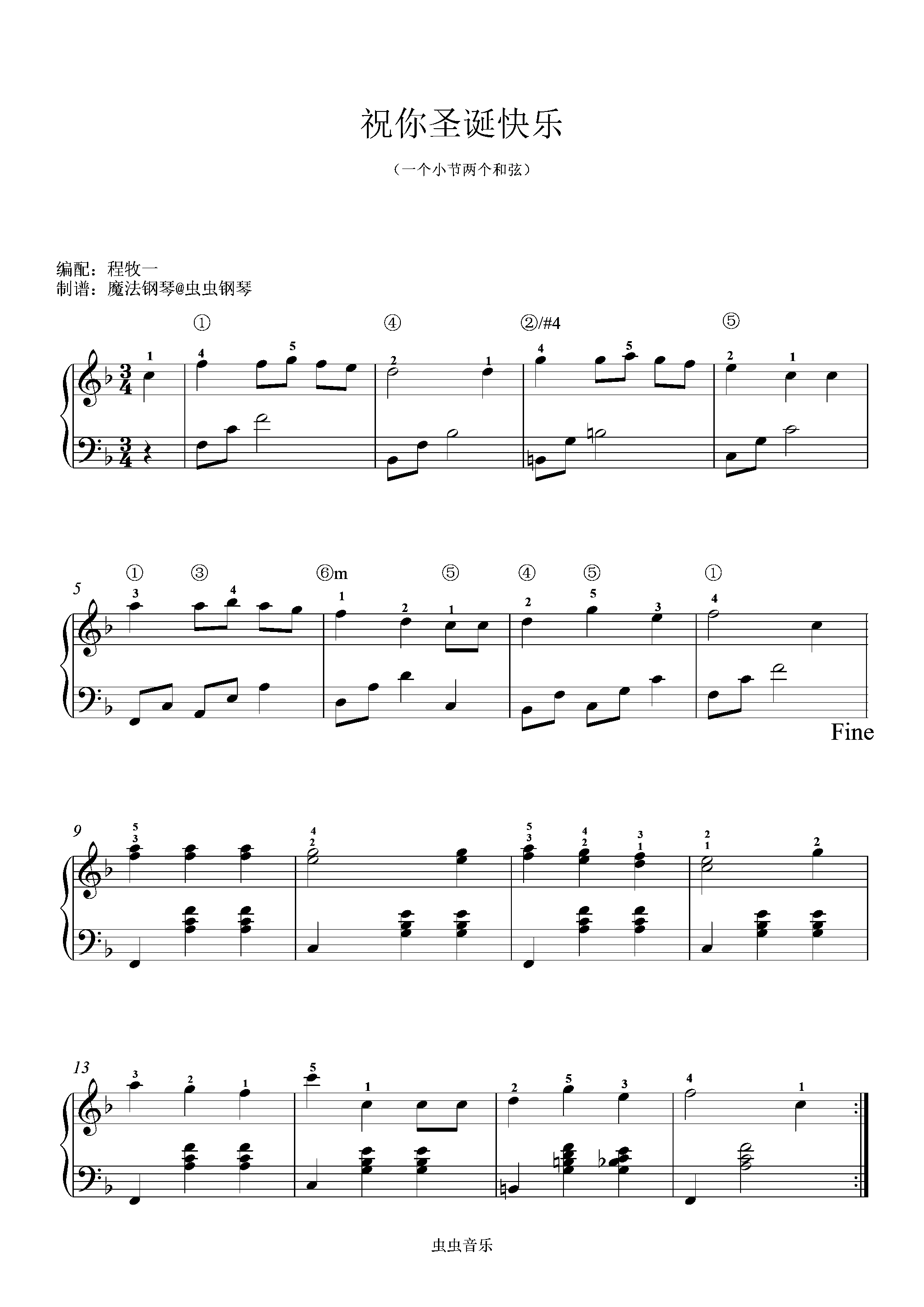 • 祝你圣诞快乐钢琴简谱 F调 数字双手