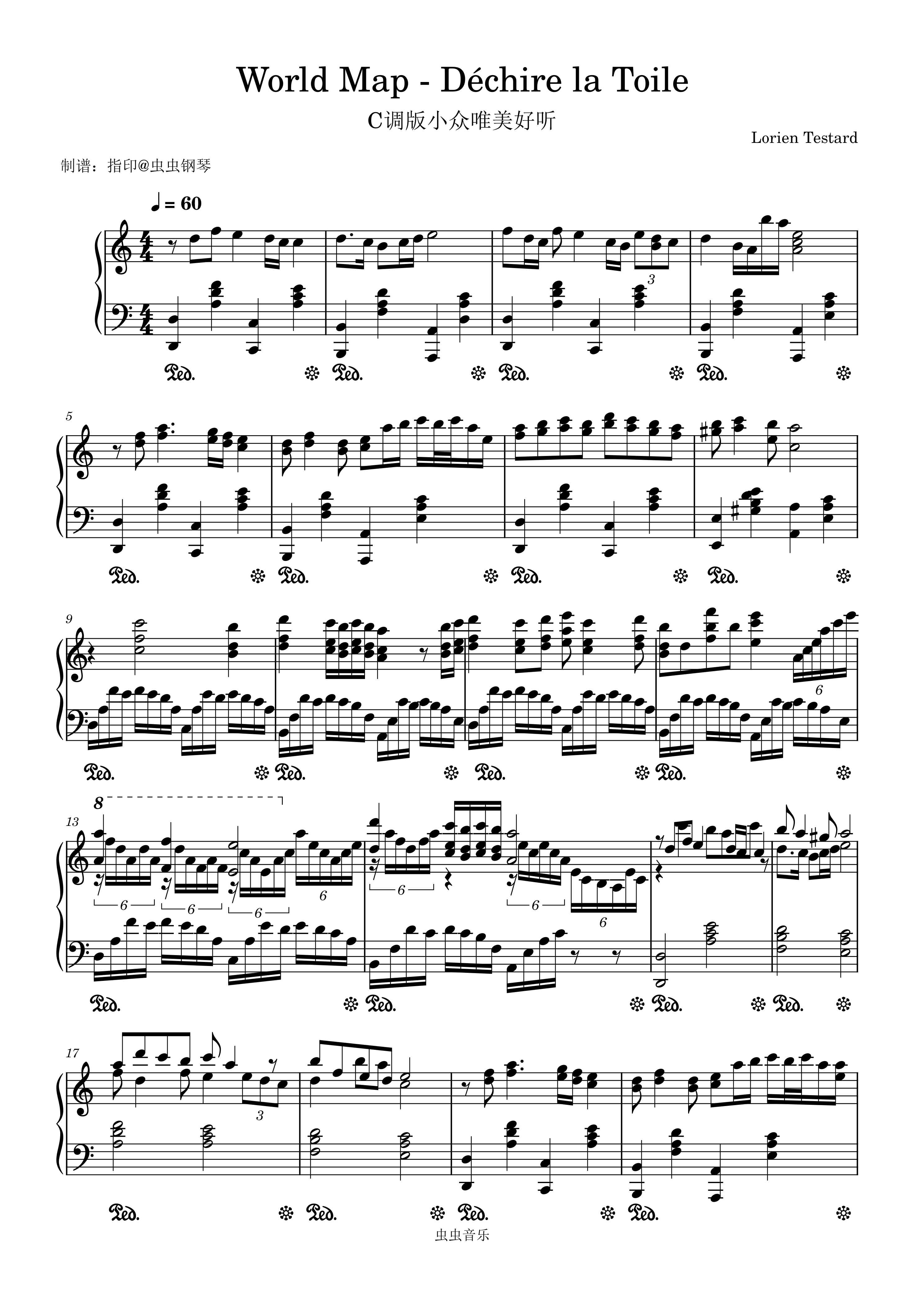 钢琴谱:C调版好听小众唯美《World Map - Déchire la Toile》