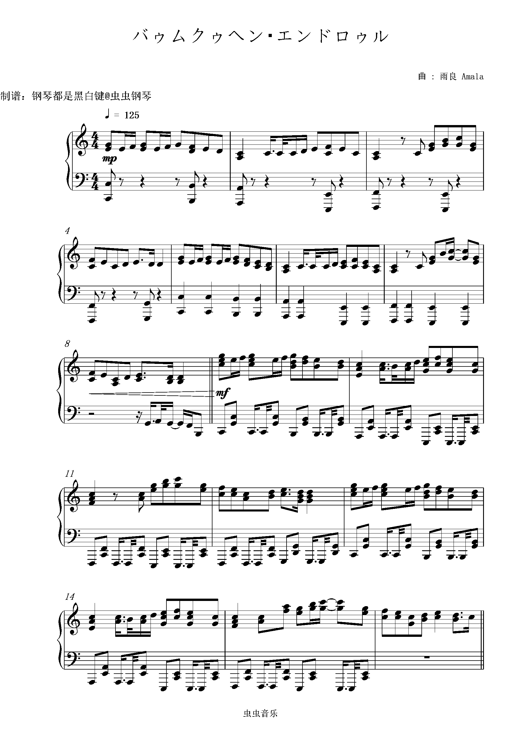 バゥムクゥヘン・エンドロゥル c钢琴简谱 数字双手 雨良 Amala