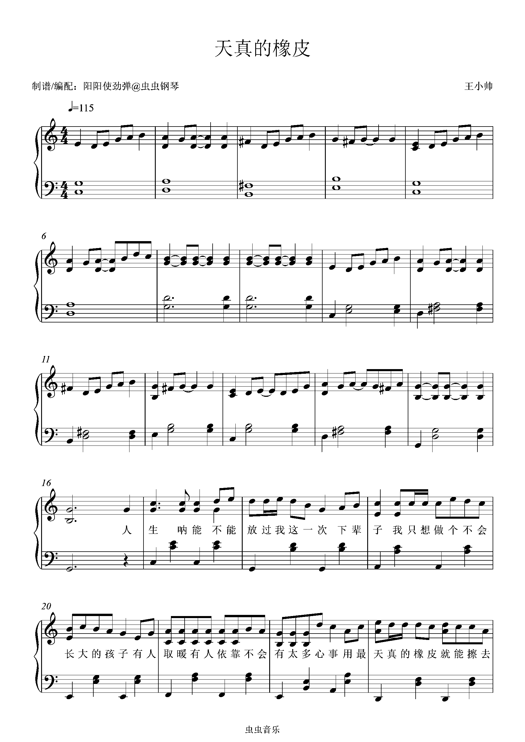 钢琴谱:天真的橡皮(附歌词DJ版)