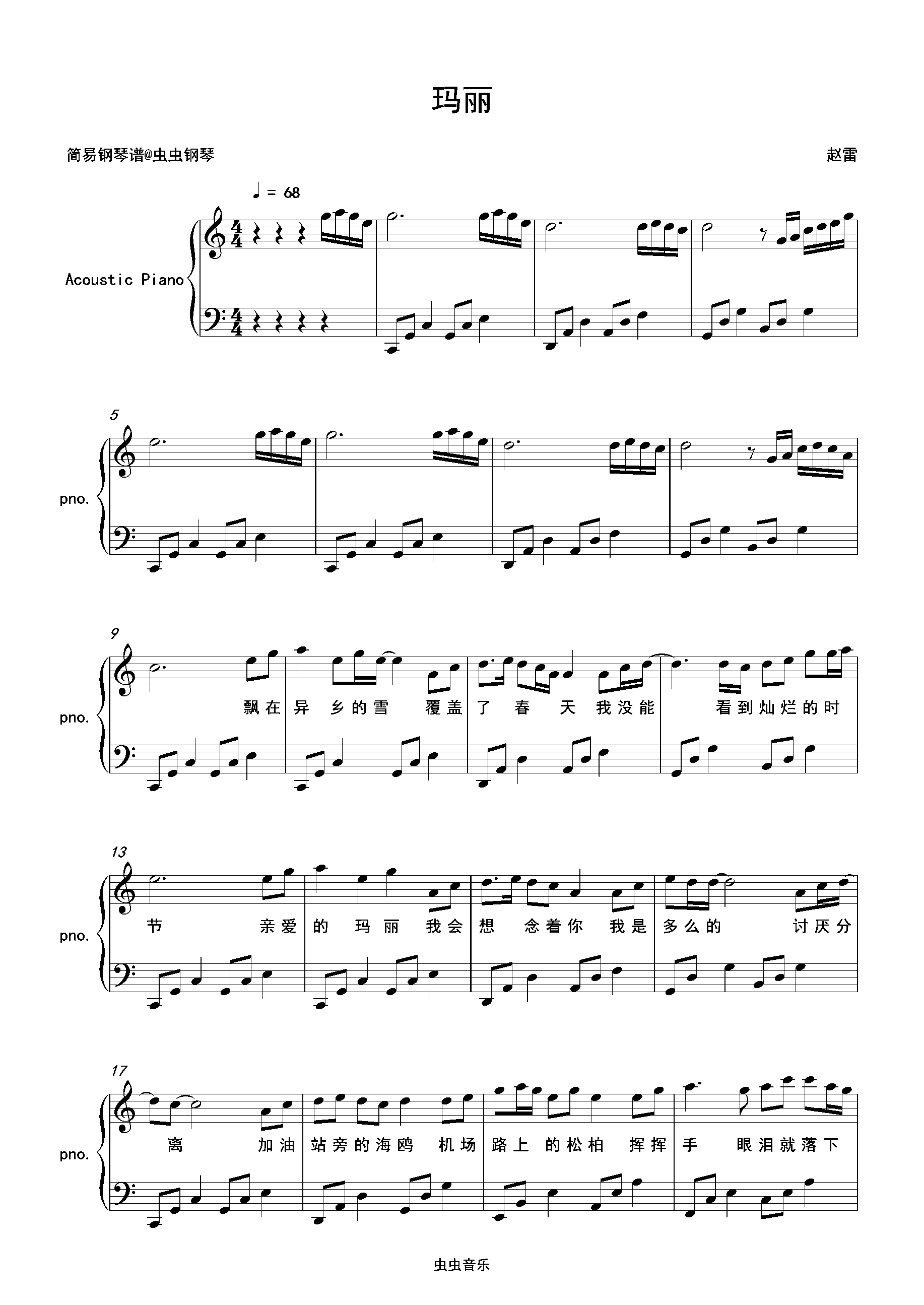 • 16.玛丽有只小羔羊钢琴简谱 C调 数字双手