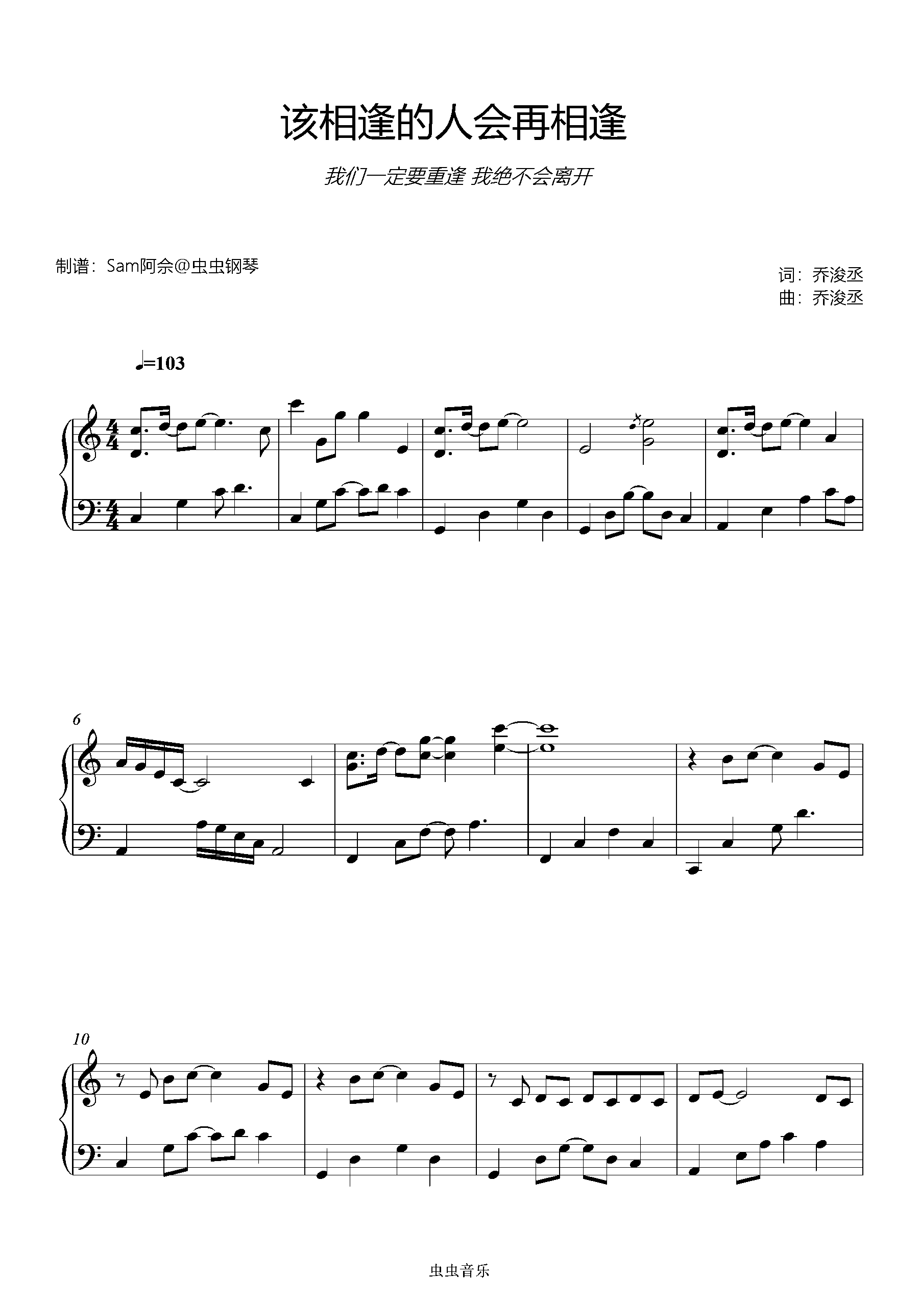 钢琴谱:原调《该相逢的人会再相逢》刘宇宁