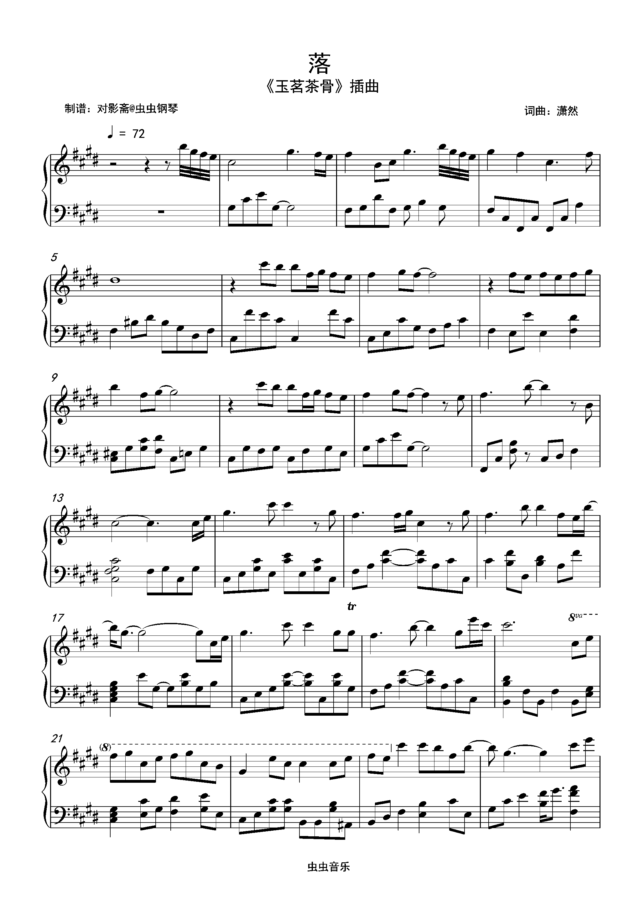钢琴谱:落(《玉茗茶骨》插曲)