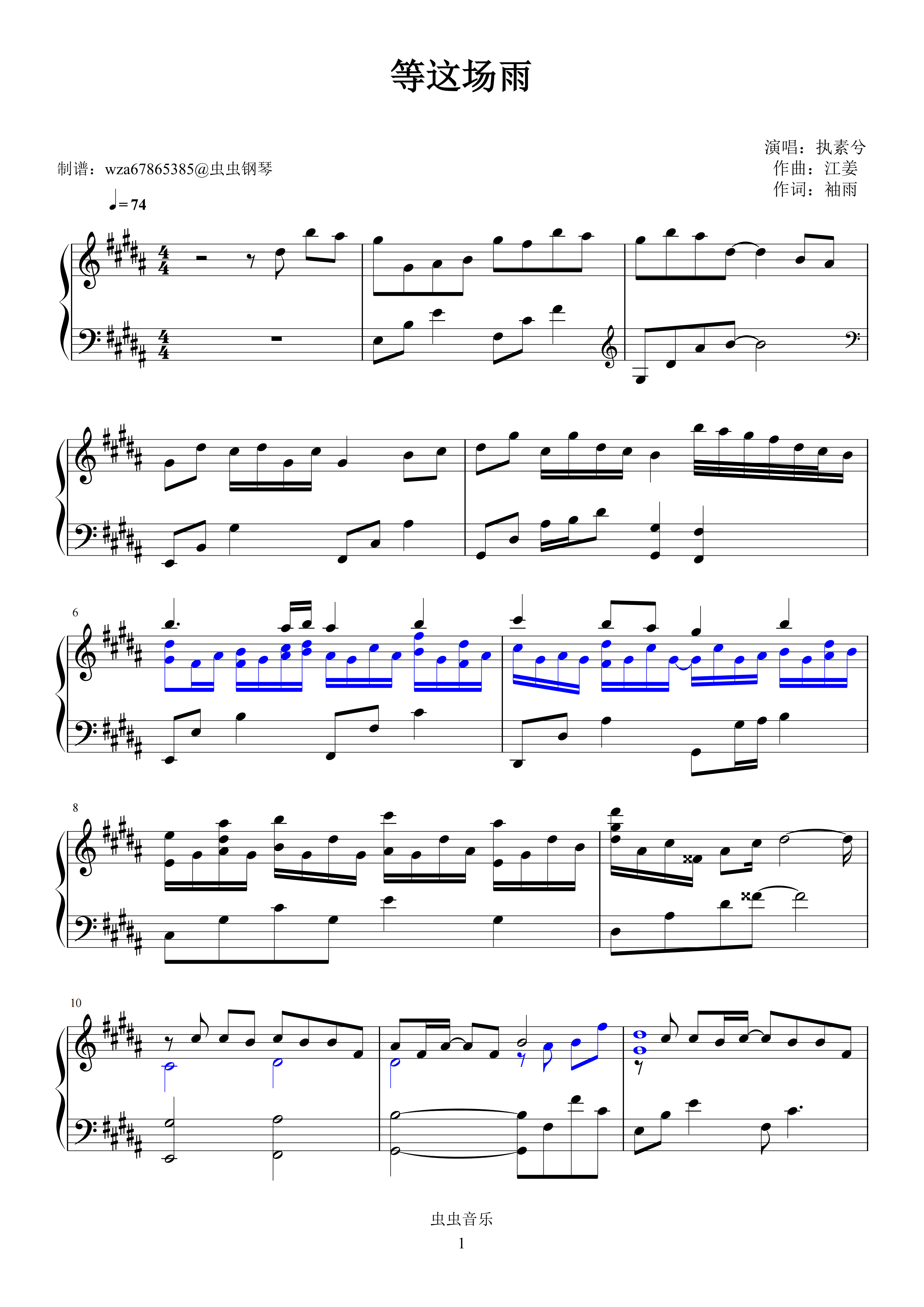 • 雨钢琴简谱 G调 数字双手 萨吉