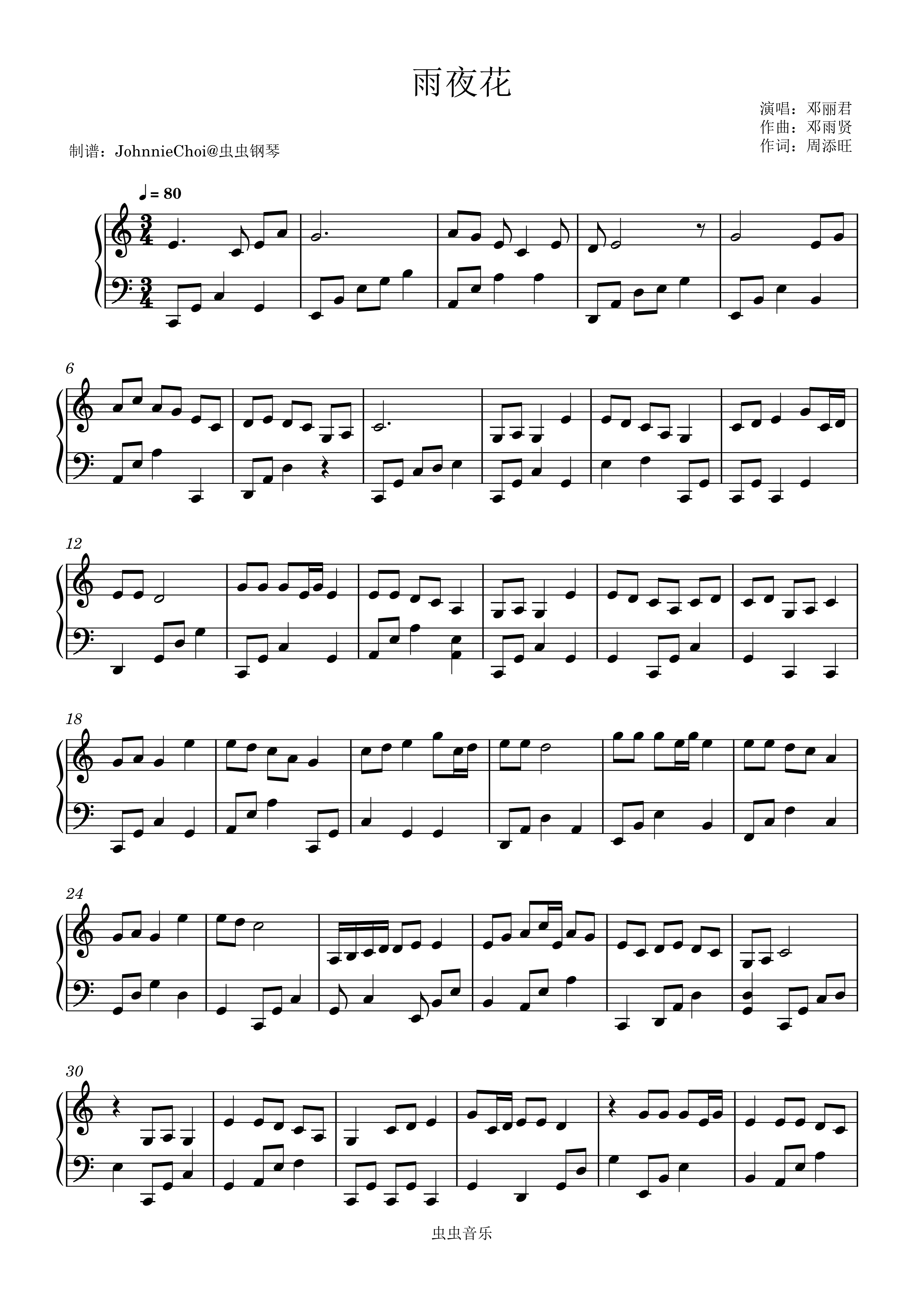 钢琴谱:雨夜花-邓丽君-完整版