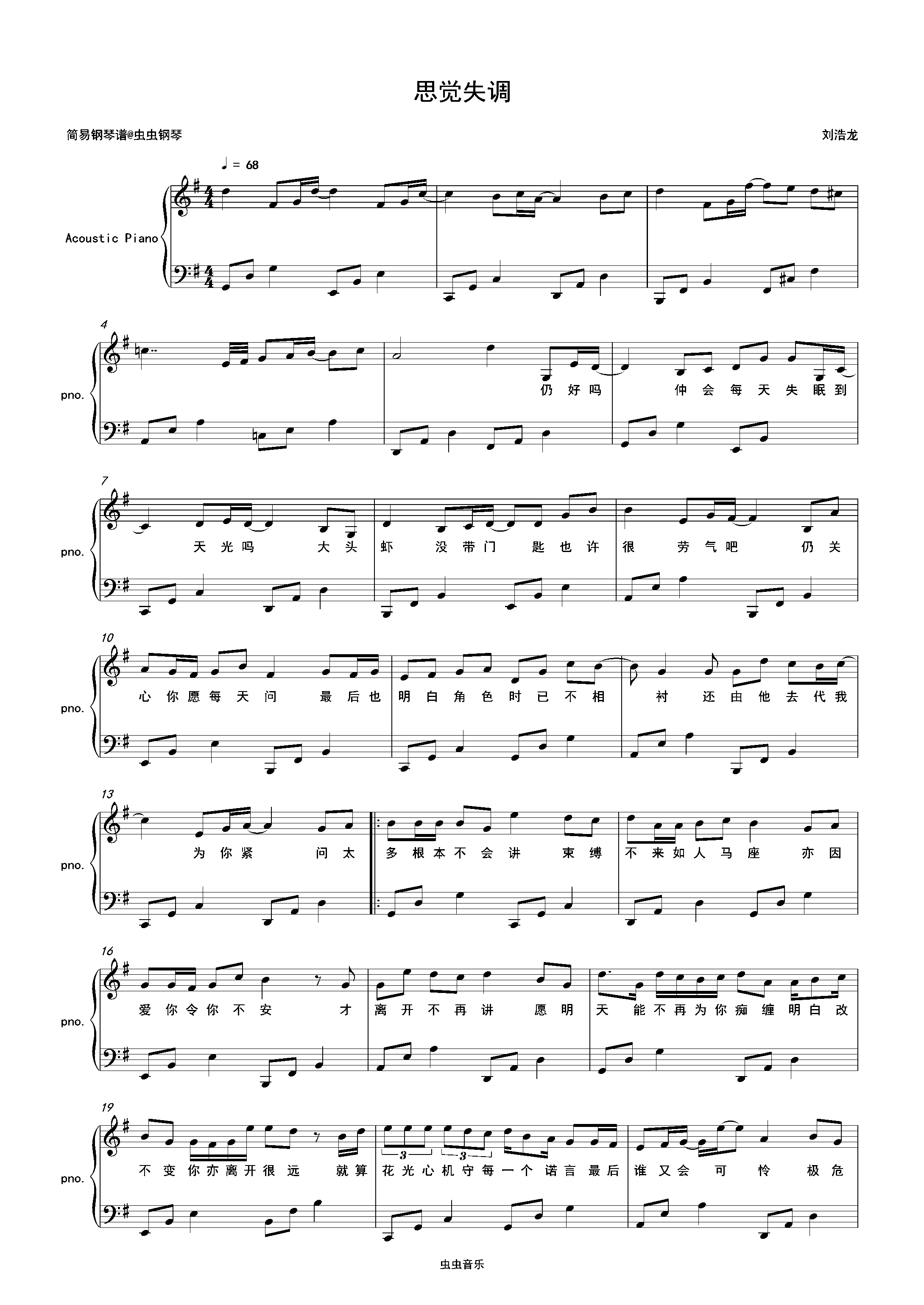 钢琴谱:思觉失调-刘浩龙 G调独奏