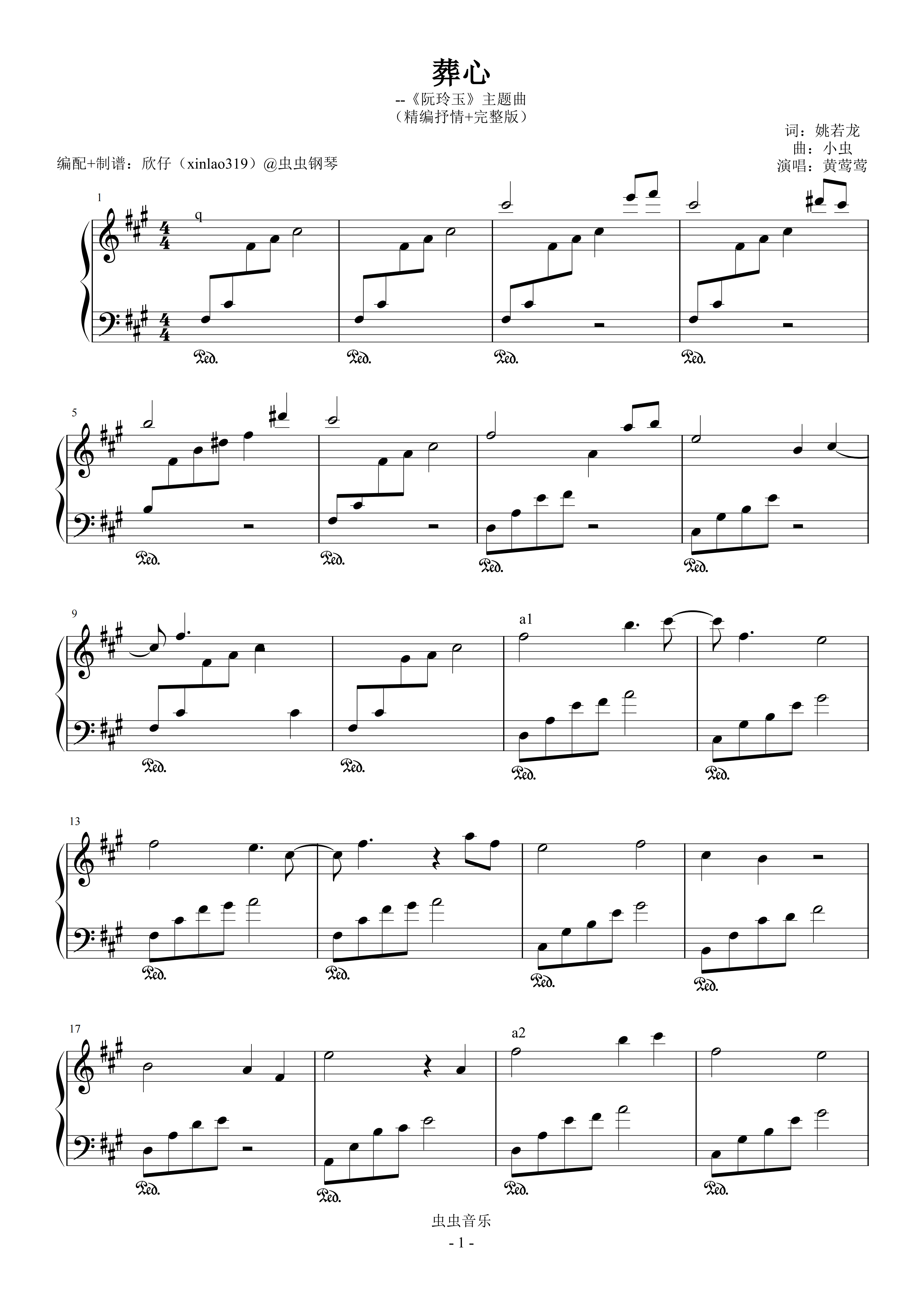 钢琴谱:葬心(A、黄莺莺《阮玲玉》主题曲、完整版)