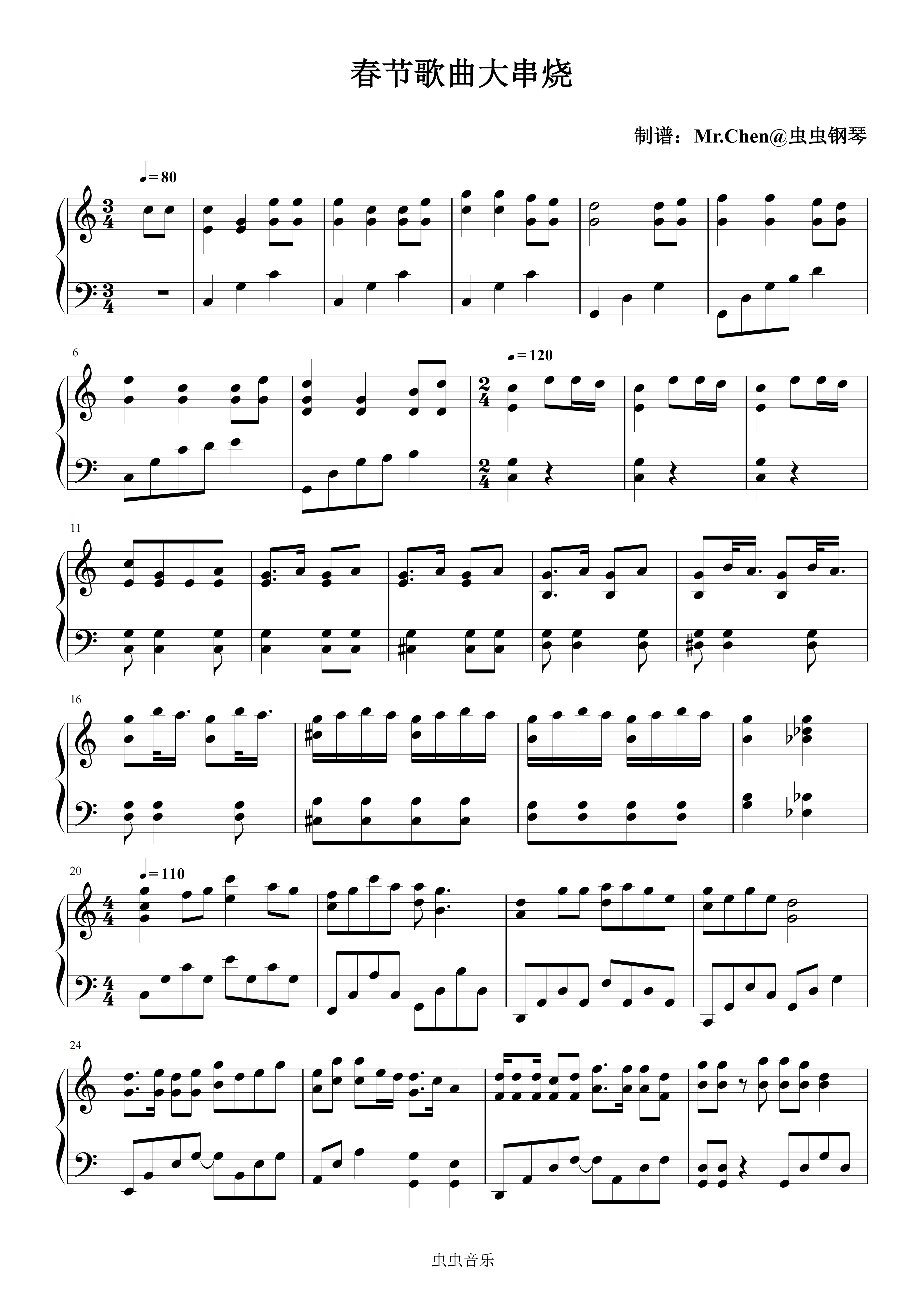 钢琴谱:春节歌曲大串烧 - 春节必弹 全C调