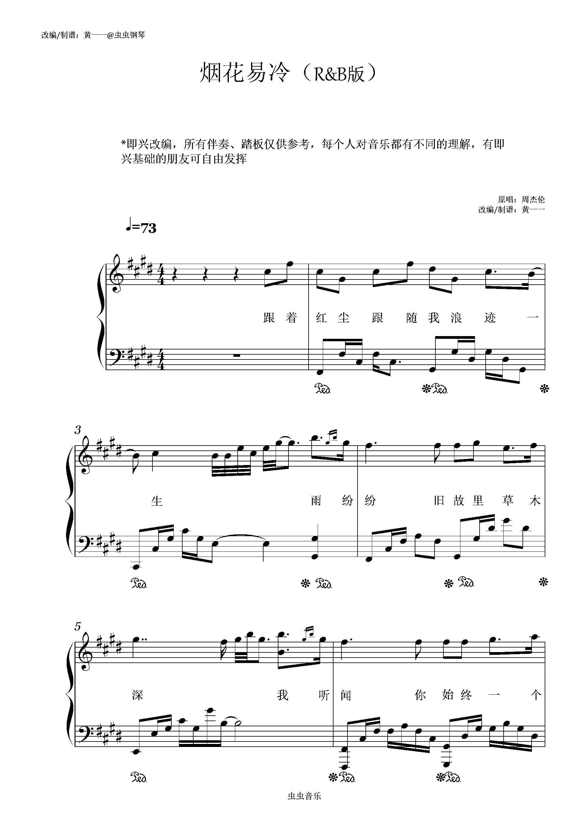 钢琴谱:烟花易冷(R&B版)即兴--中级
