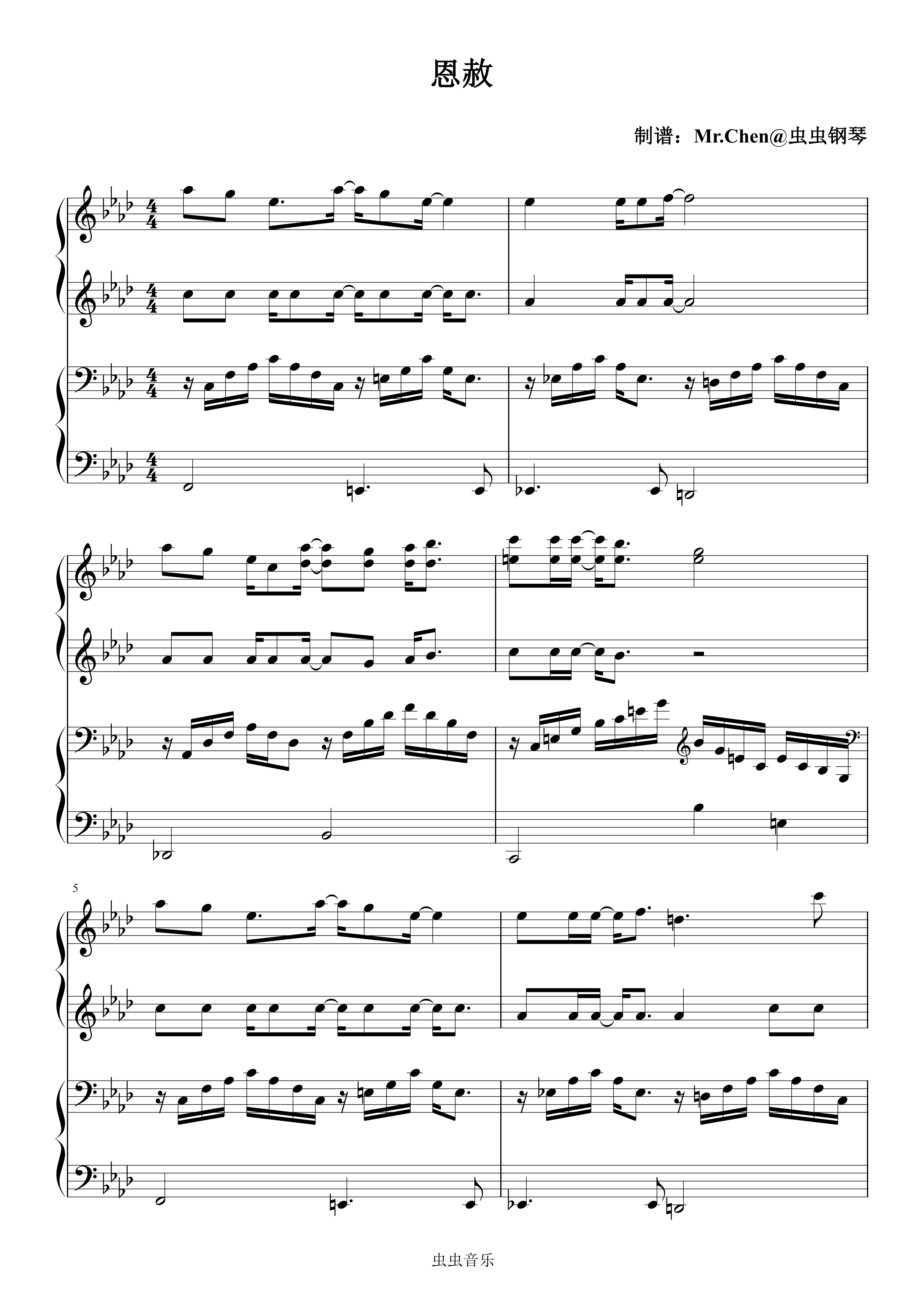 • 恩赦钢琴简谱 Ab调 数字双手 方休