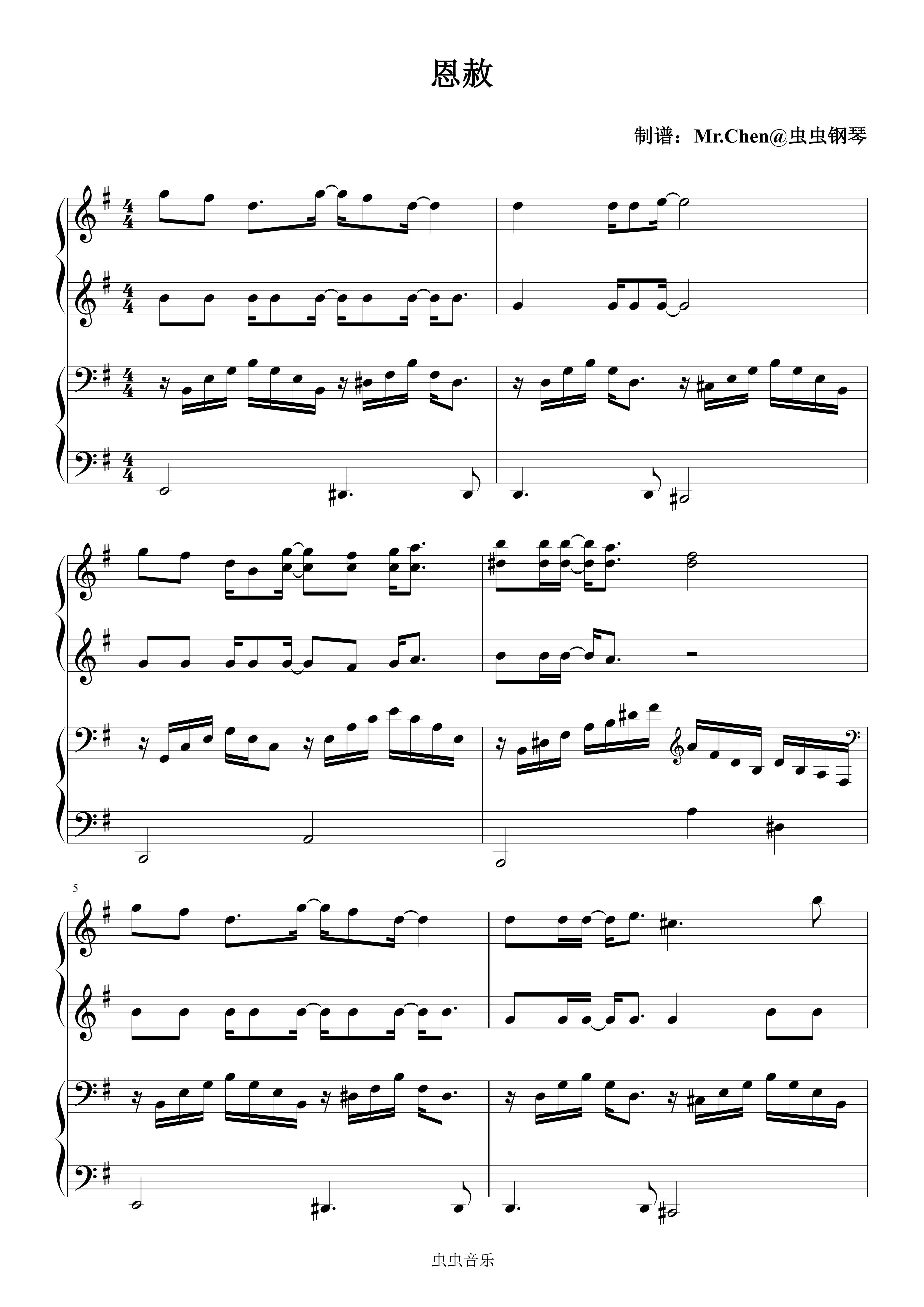 钢琴谱:恩赦 (四手联弹)G调 - 广播剧《人鱼陷落》第二季主题曲