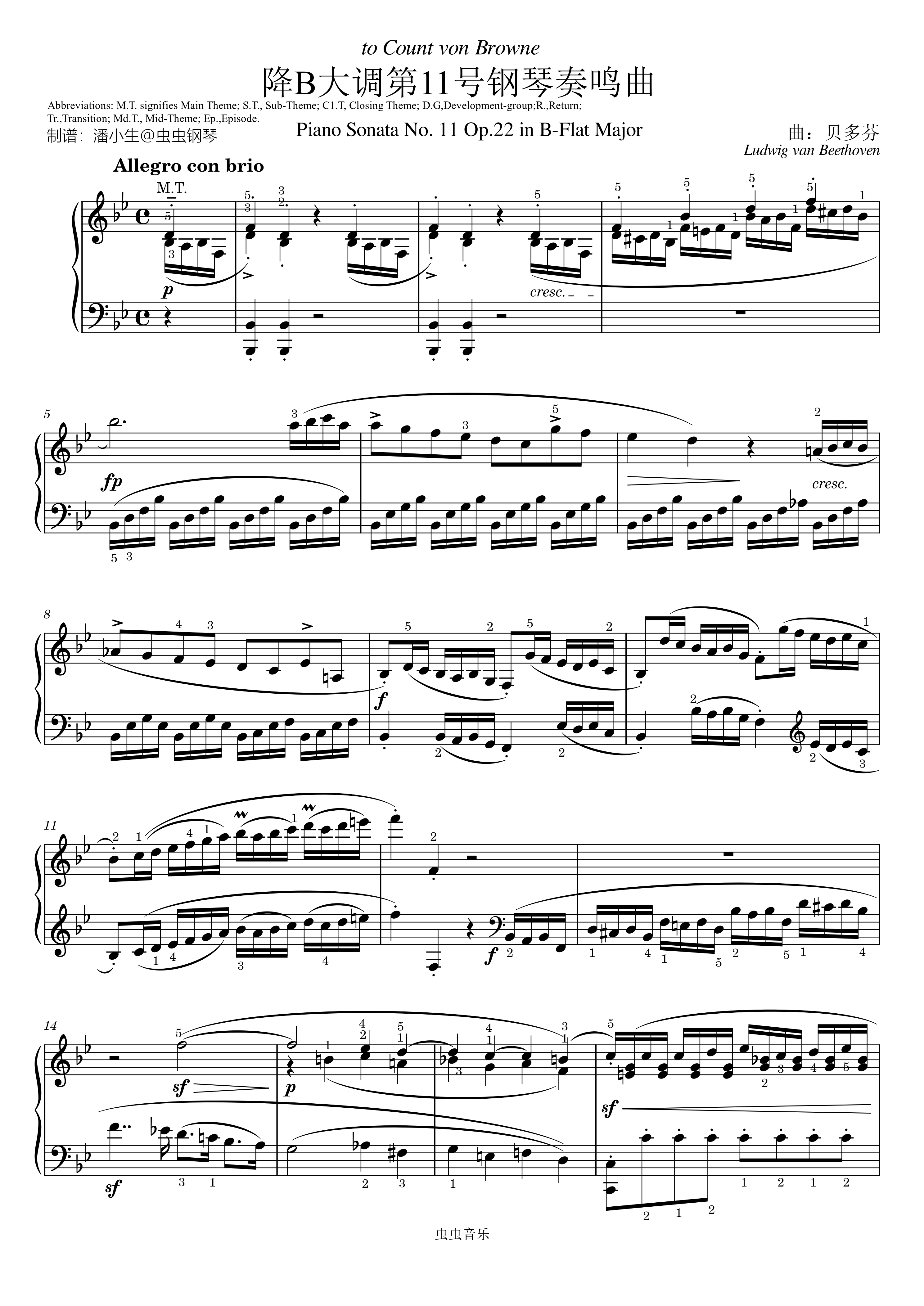 贝多芬 降B大调第11号钢琴奏鸣曲 Op.22 原版带指法 完整版 Piano No.11;