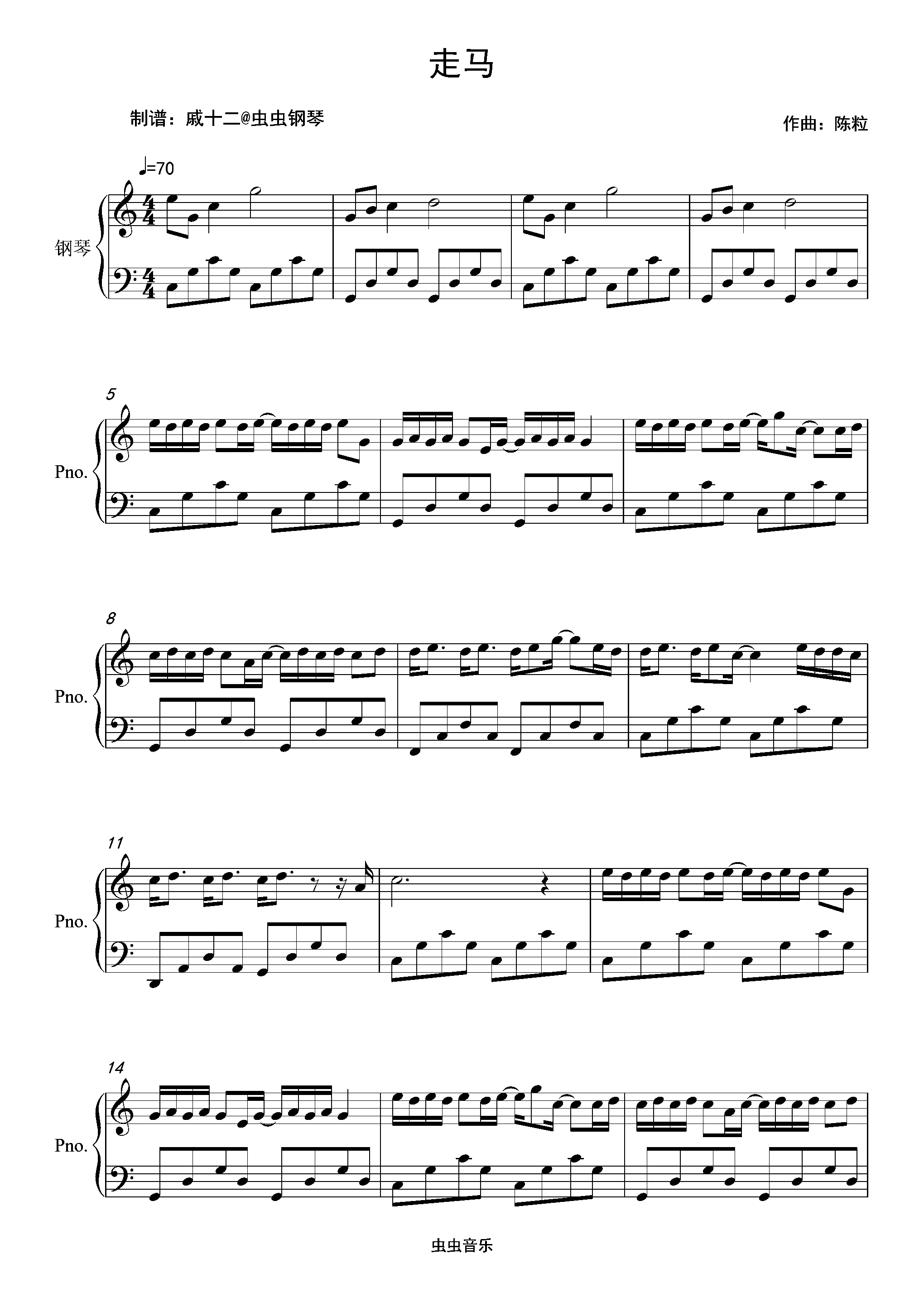 钢琴谱:走马-C调简单版