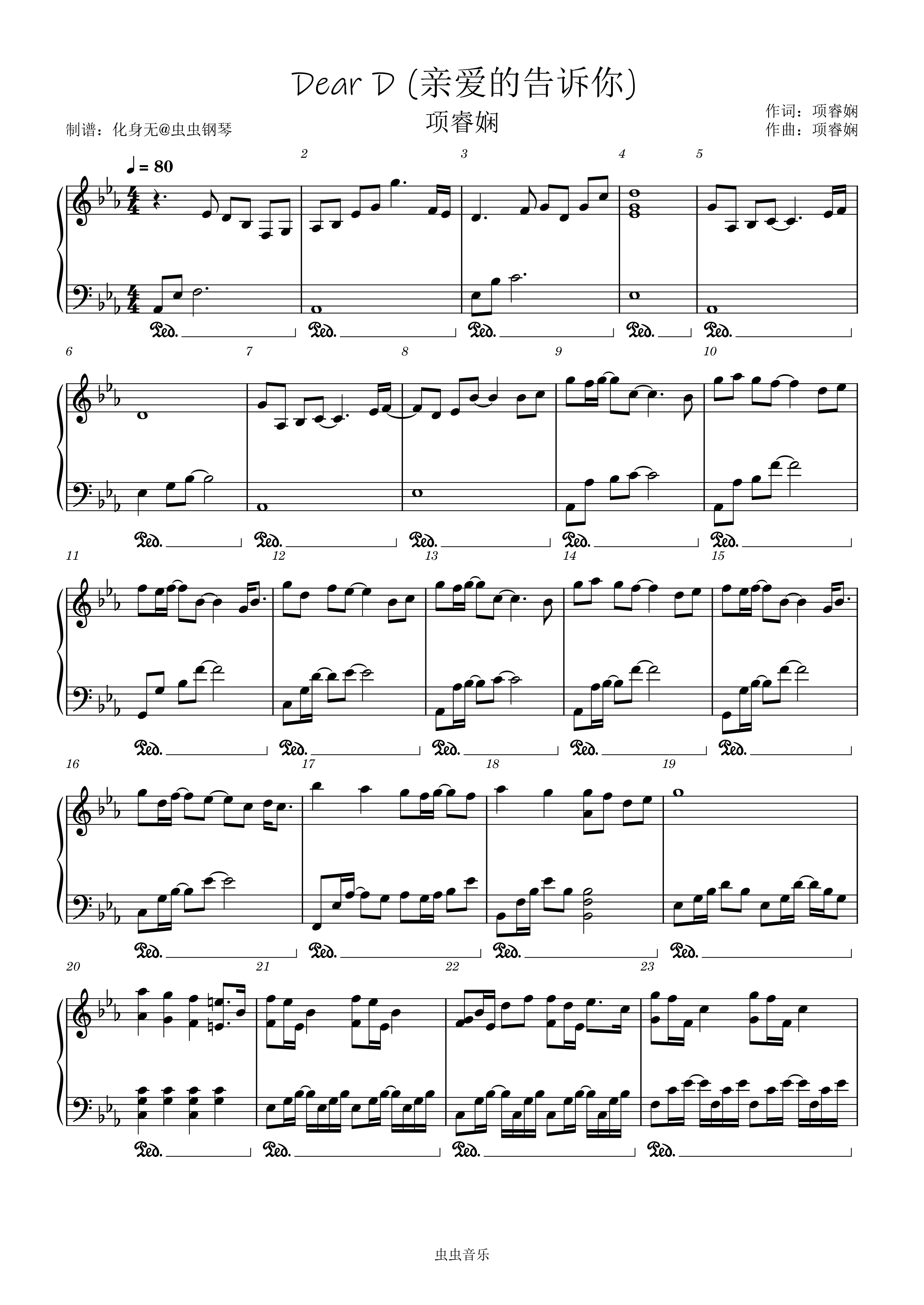 钢琴谱:Dear D (亲爱的告诉你) 原调独奏版 化身无编配