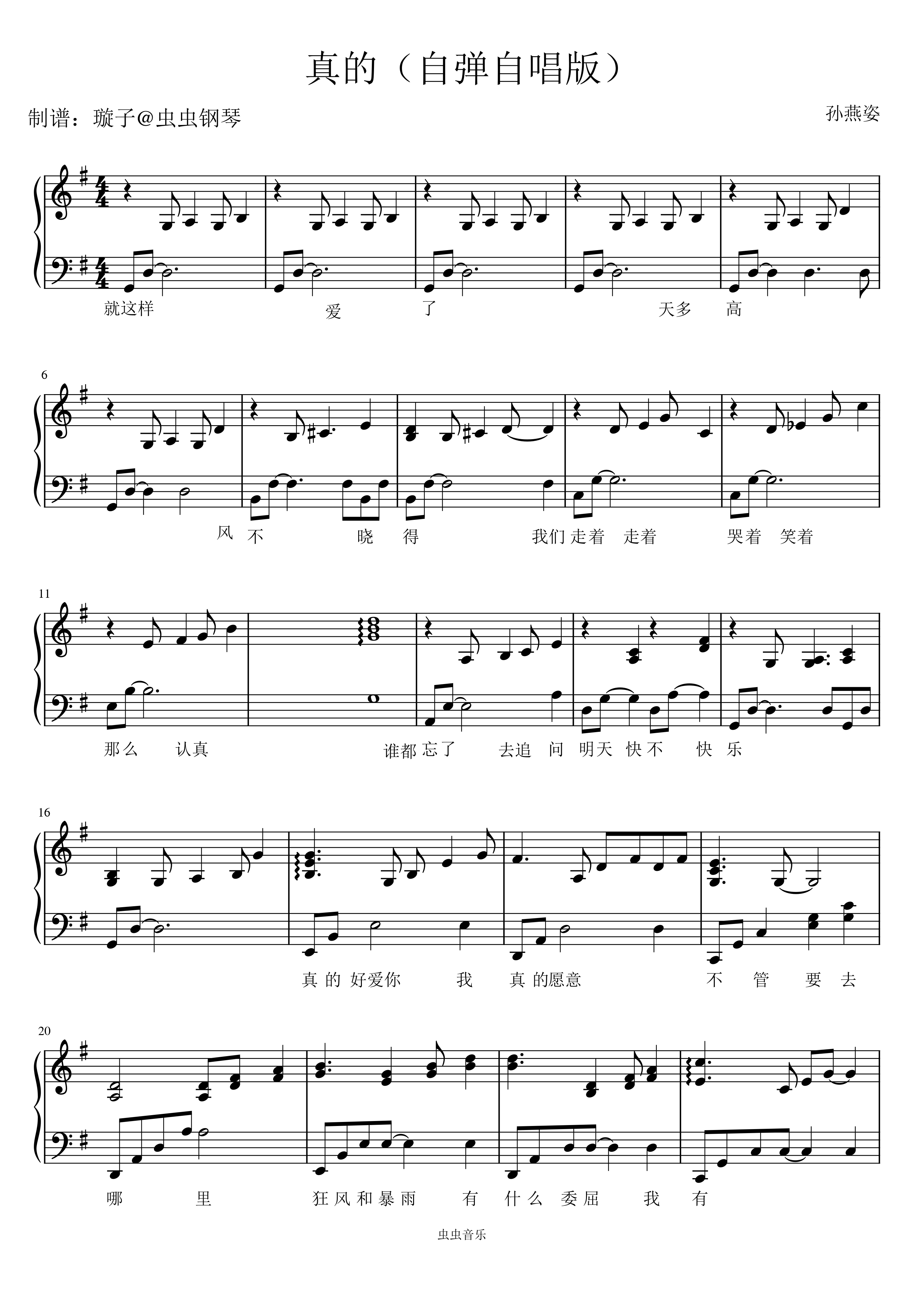 钢琴谱:真的-孙燕姿 自弹自唱版