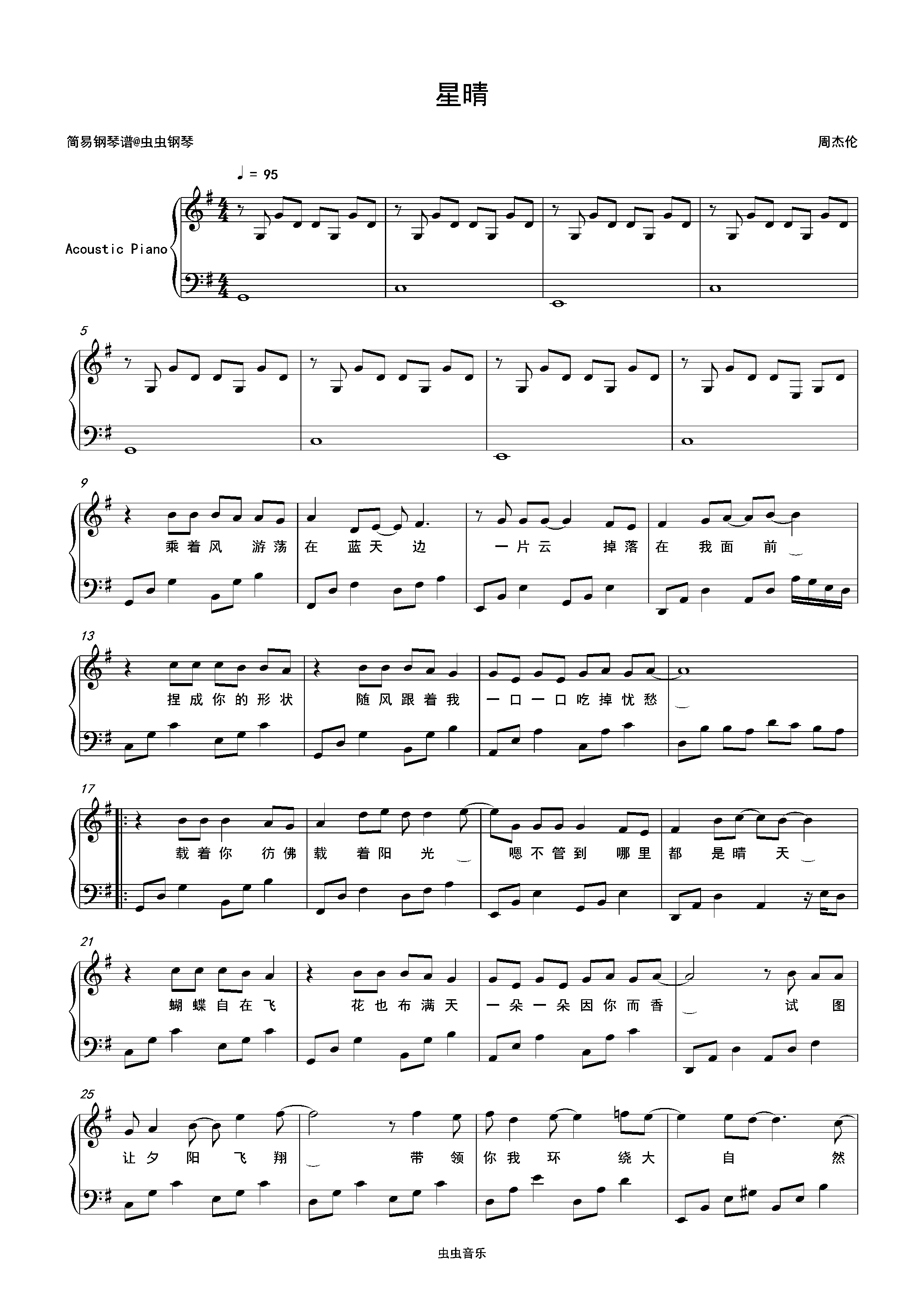 钢琴谱:星晴-周杰伦 G调独奏