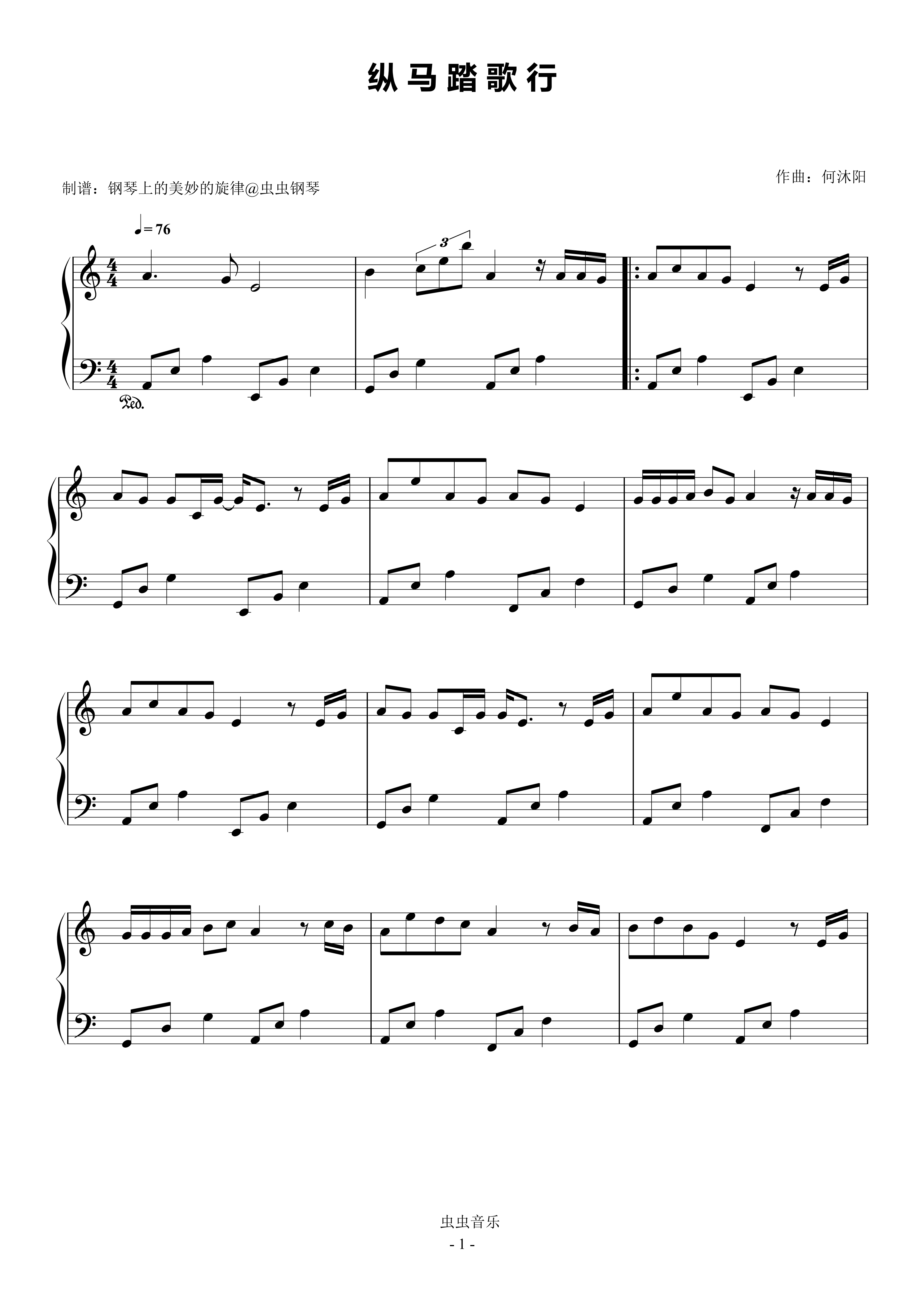 纵马踏歌行钢琴简谱 数字双手