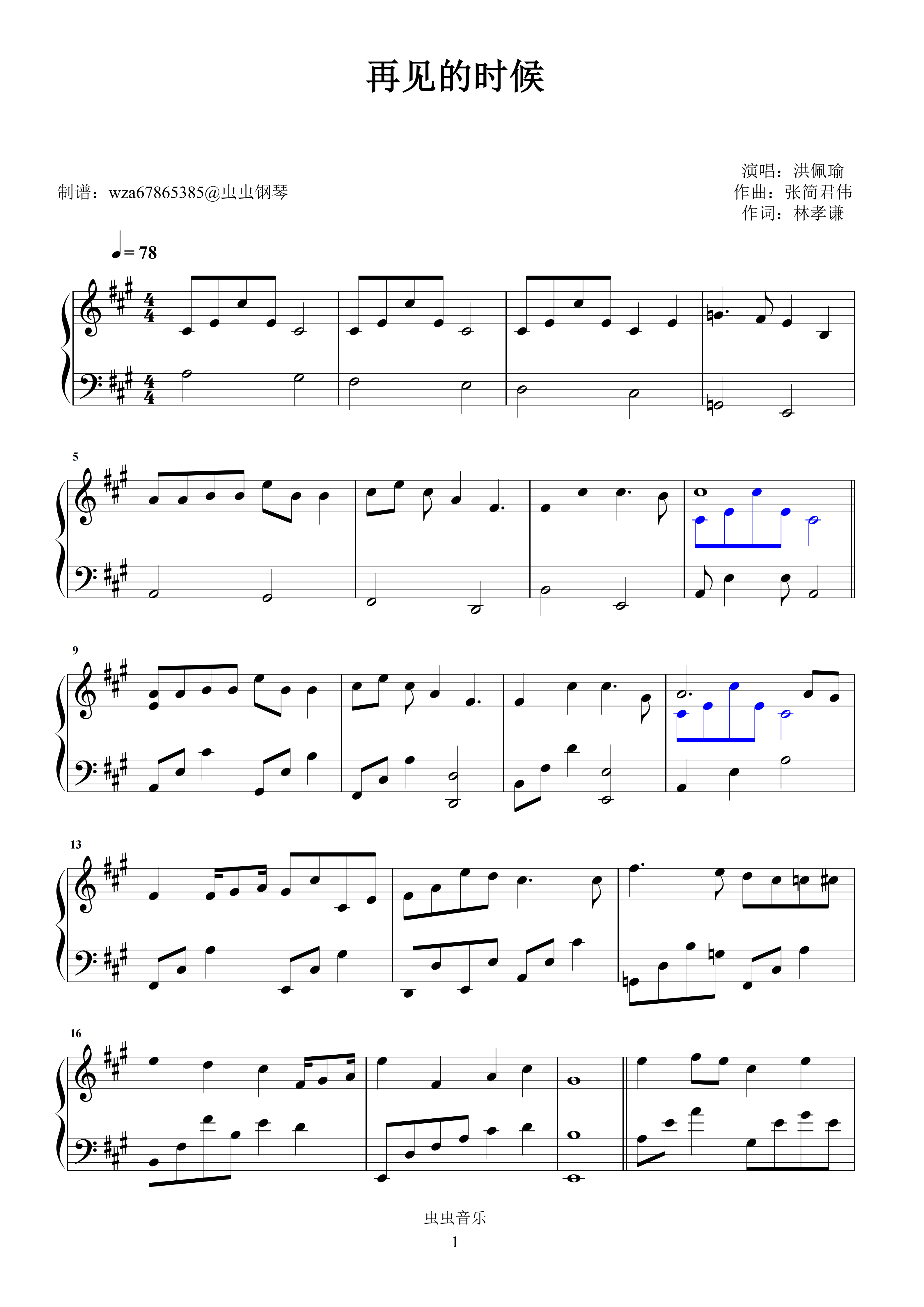 钢琴谱:再见的时候