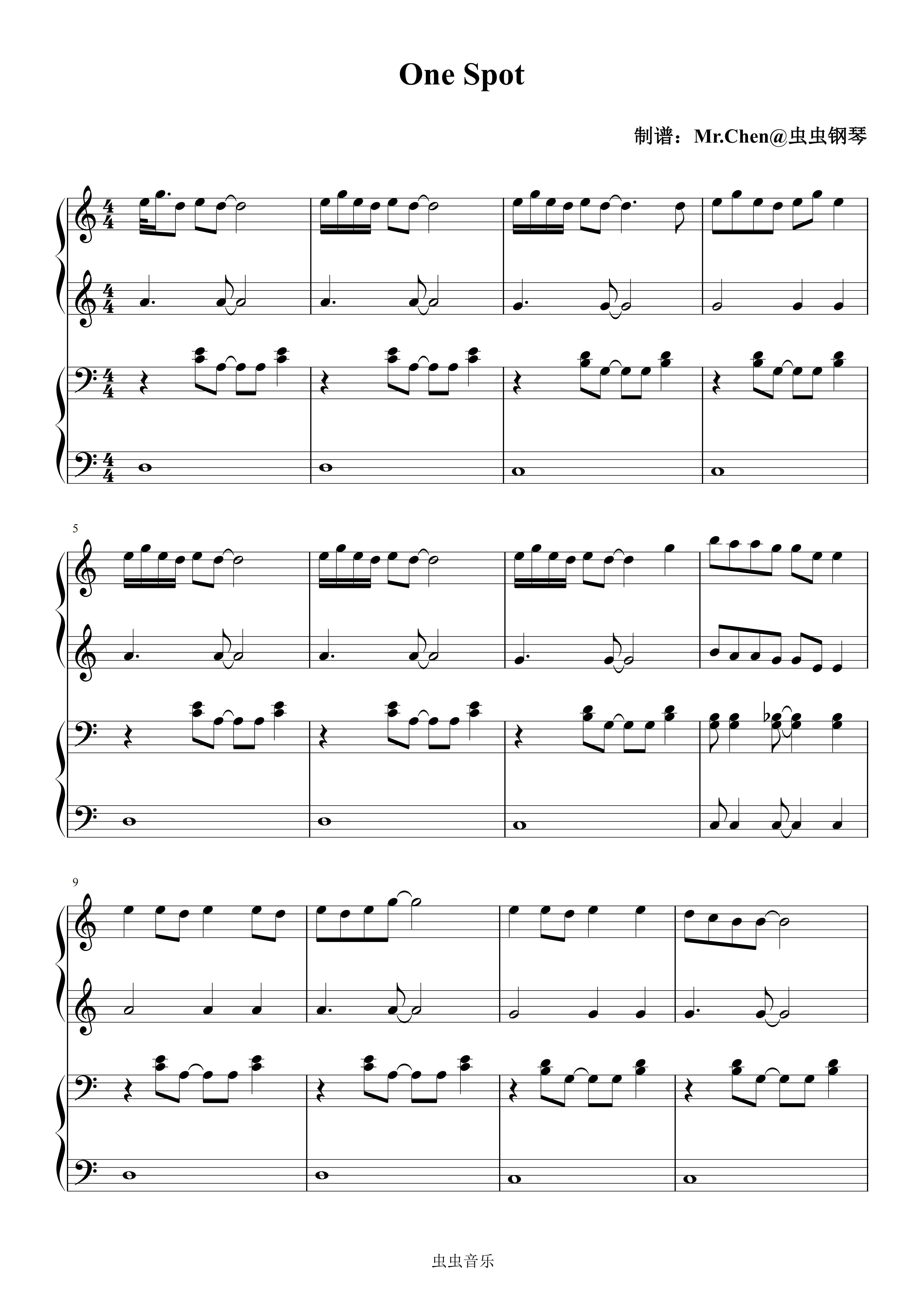 钢琴谱:One Spot (四手联弹)- 沈佳润 (NINA)