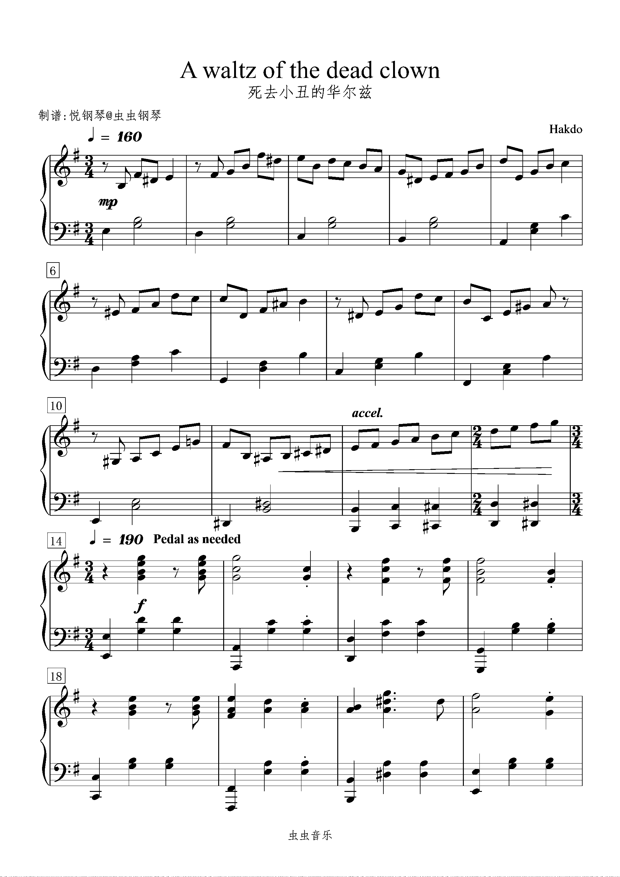 钢琴谱:死去小丑的华尔兹/A waltz of the dead clown 【不安与无奈】