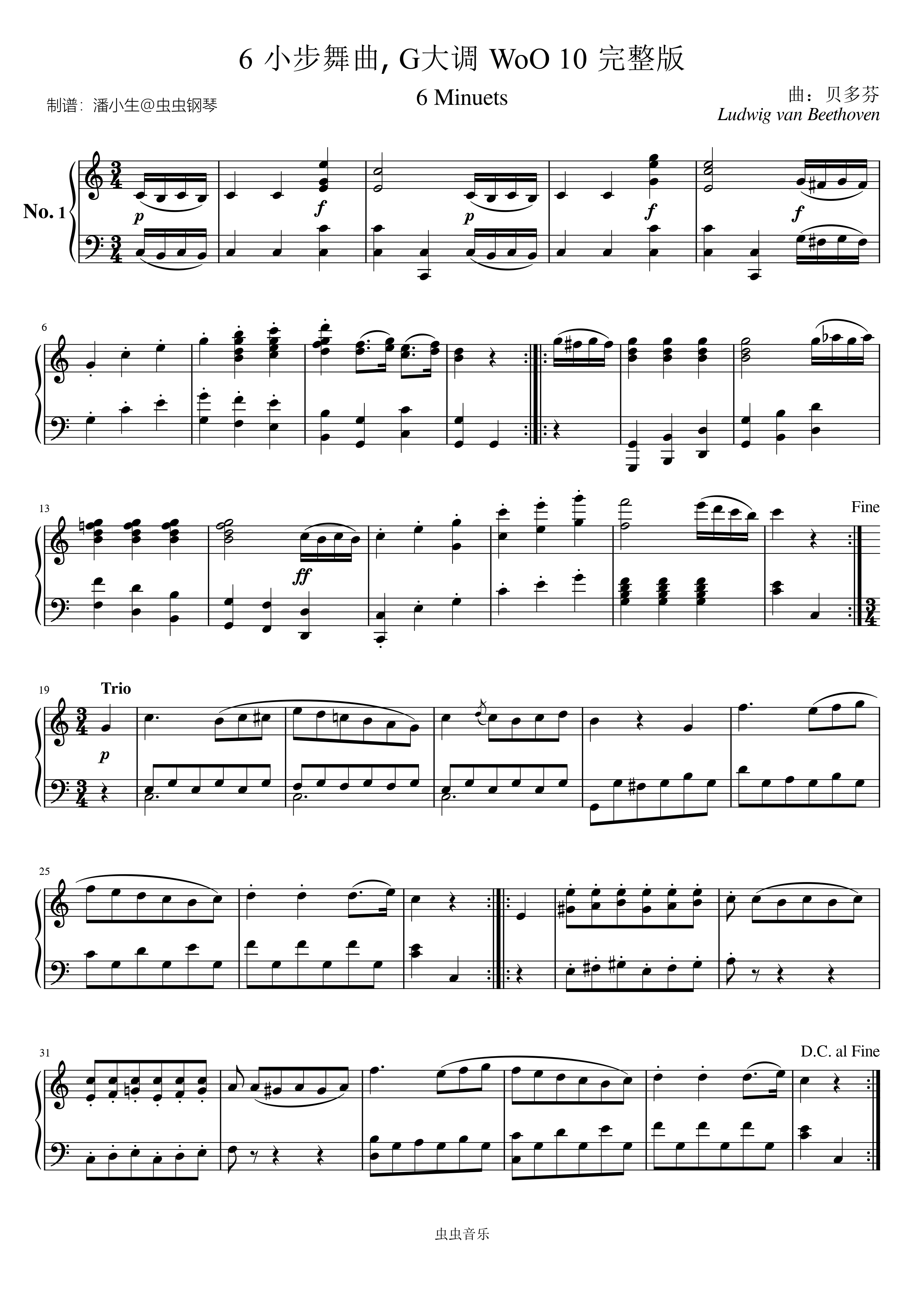 贝多芬 6 小步舞曲, WoO 10 G大调 原版完整版 Beethoven, 6 Minuets