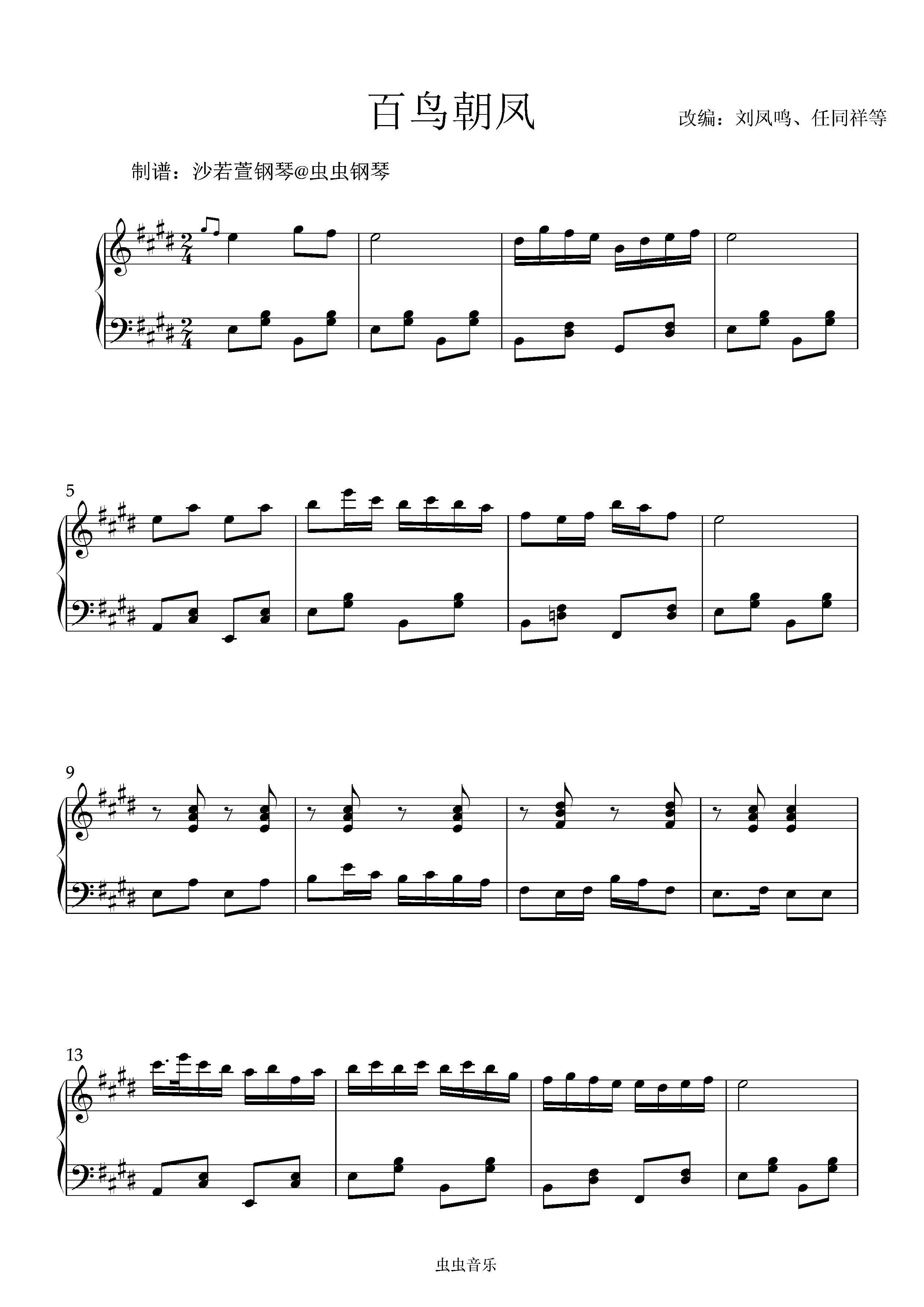 百鸟朝凤钢琴简谱 数字双手