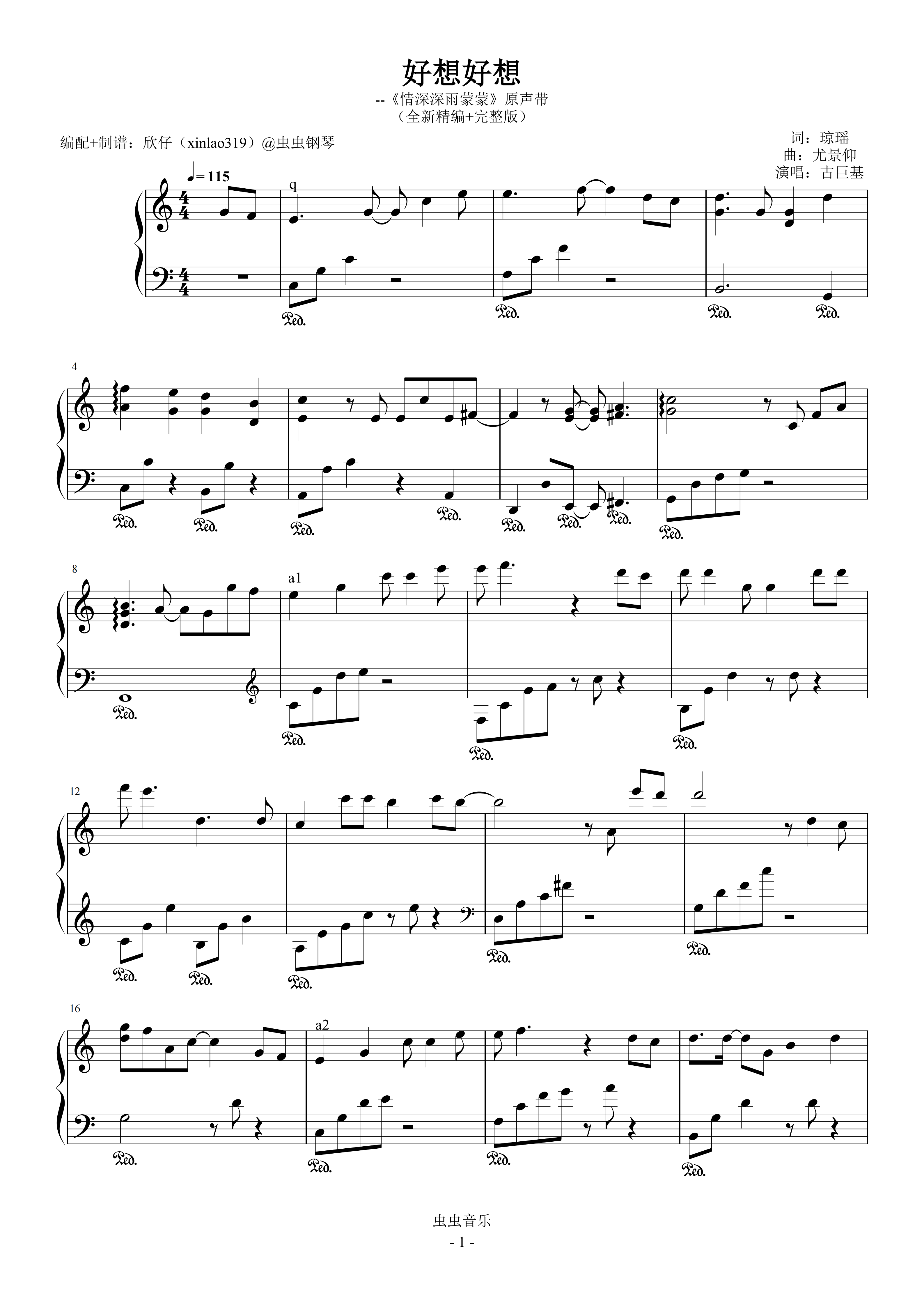 钢琴谱:好想好想(C、古巨基《情深深雨蒙蒙》原声带、完整版)