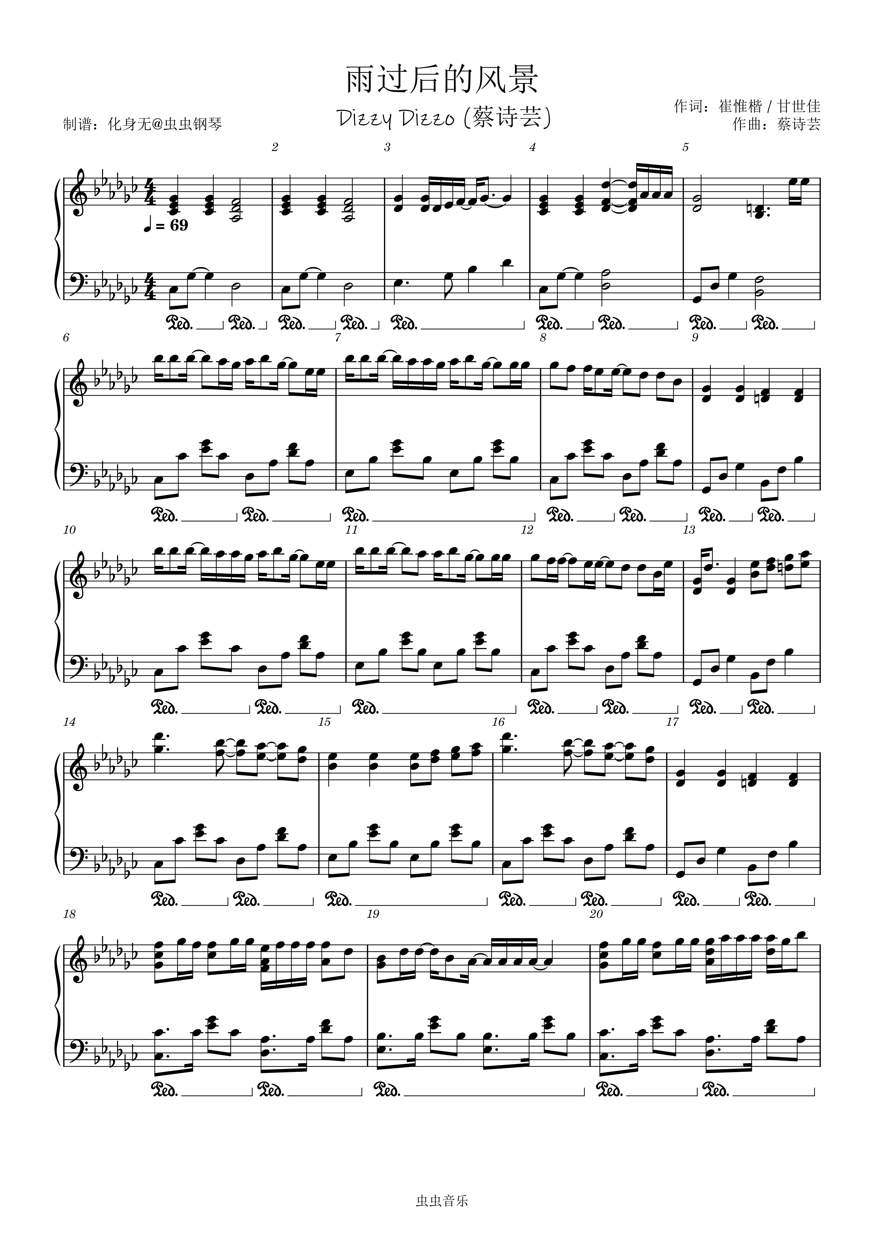 钢琴谱:雨过后的风景 Dizzy Dizzo (蔡诗芸) 原调独奏版 化身无编配