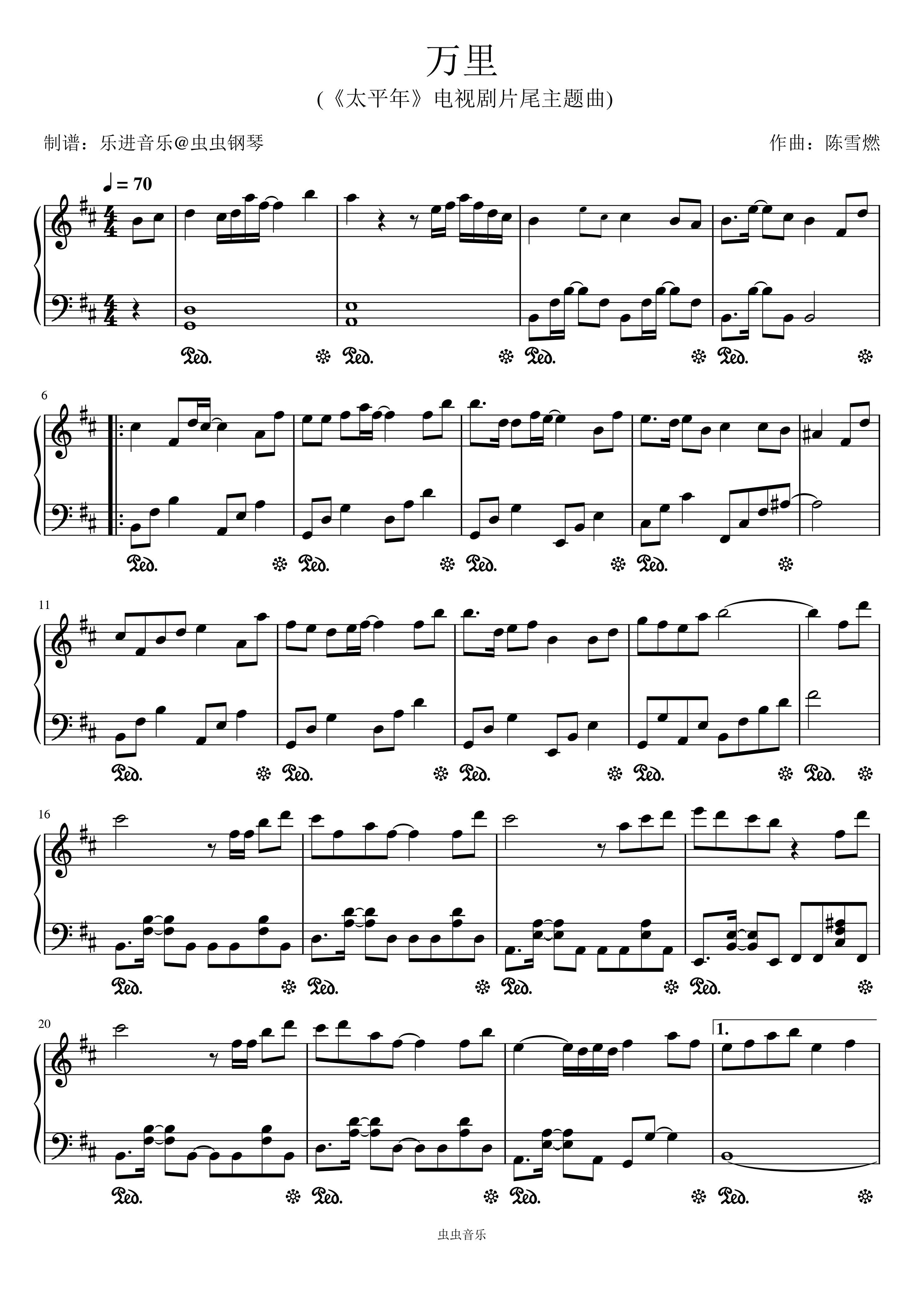 • 万里归途钢琴简谱 C调 数字双手 唐汉霄,小岛