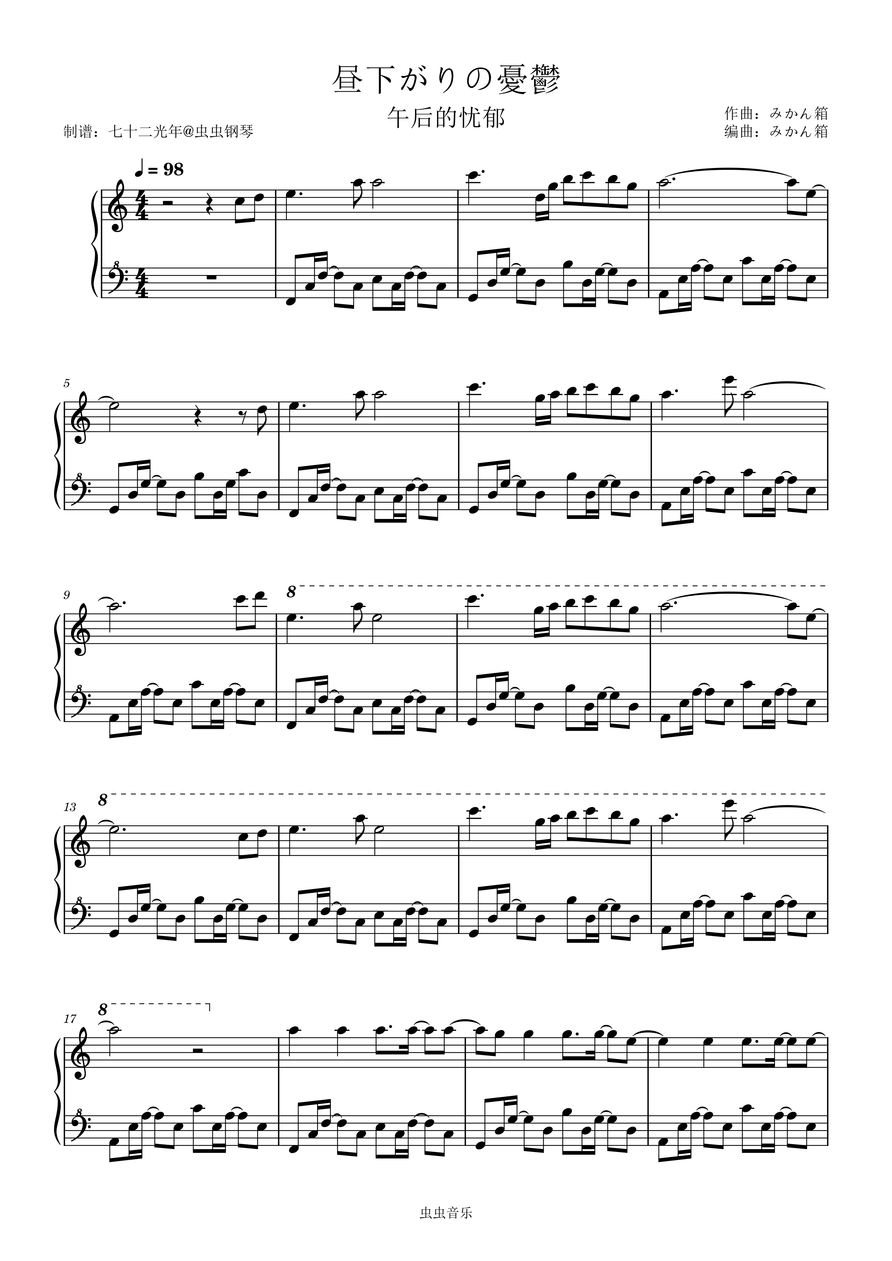 • Illusionary Daytime钢琴简谱 C调 数字双手