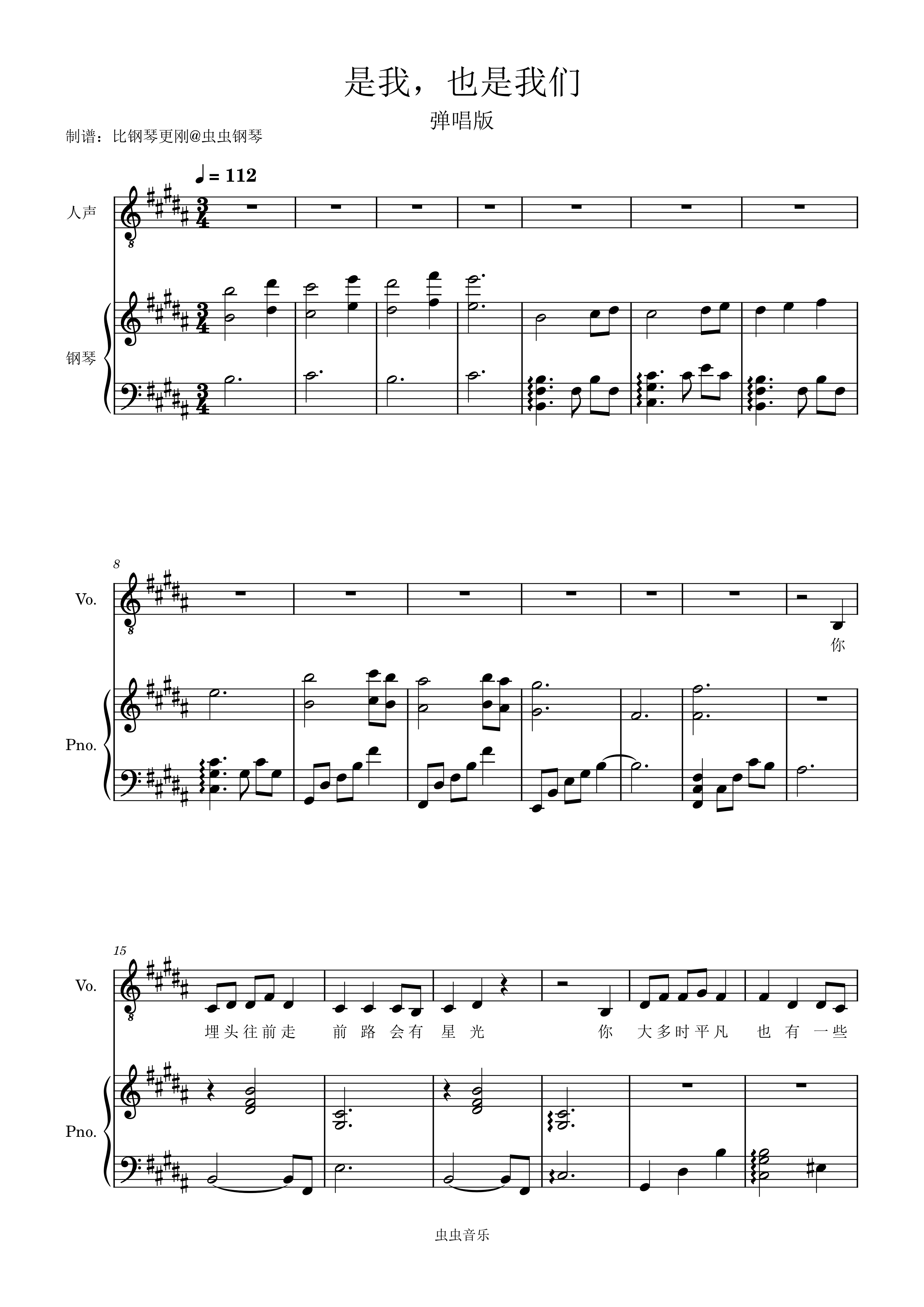 钢琴谱:是我,也是我们(弹唱版-黄子弘凡)