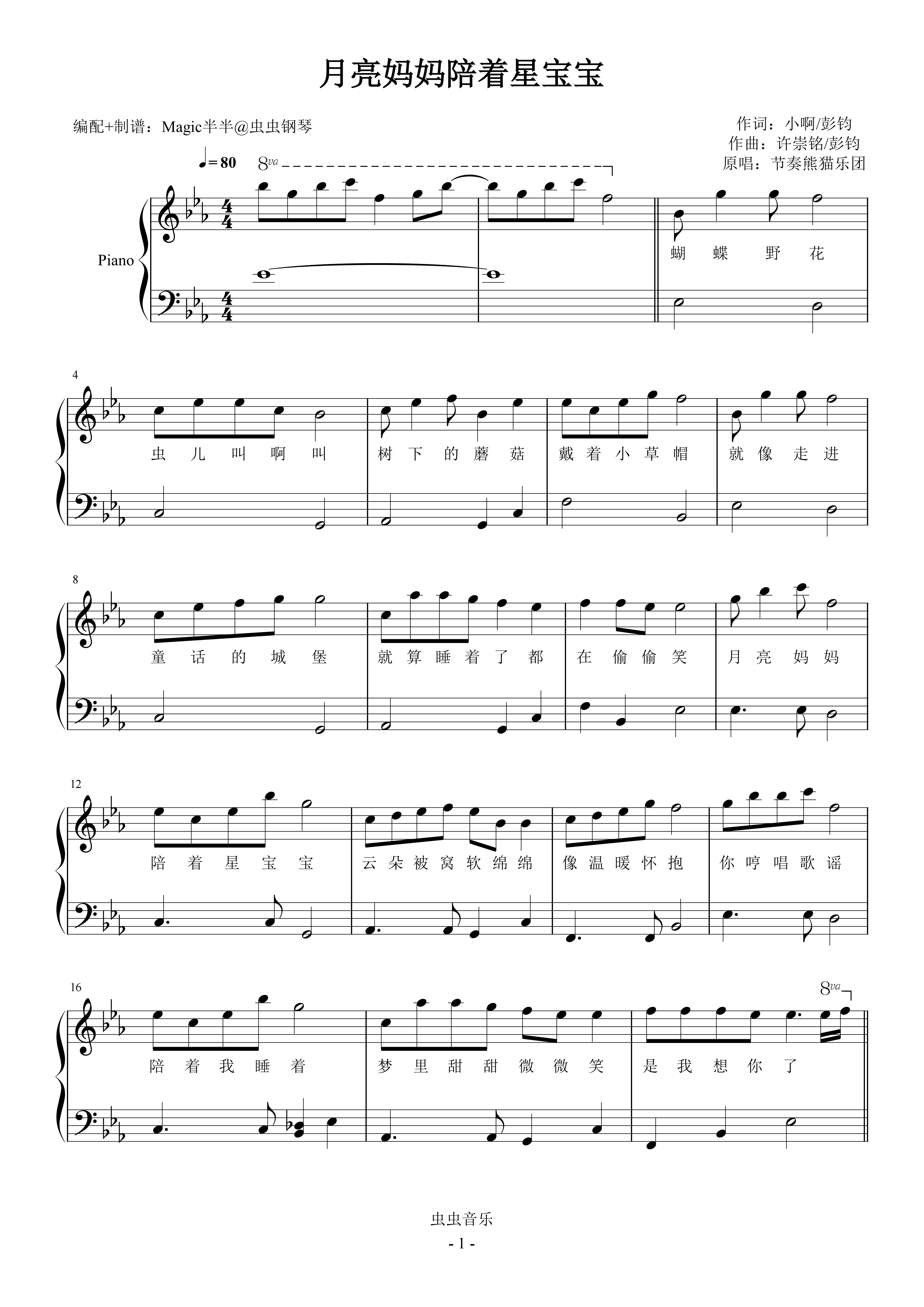 钢琴谱:月亮妈妈陪着星宝宝(实用/完整版) 节奏熊猫乐团