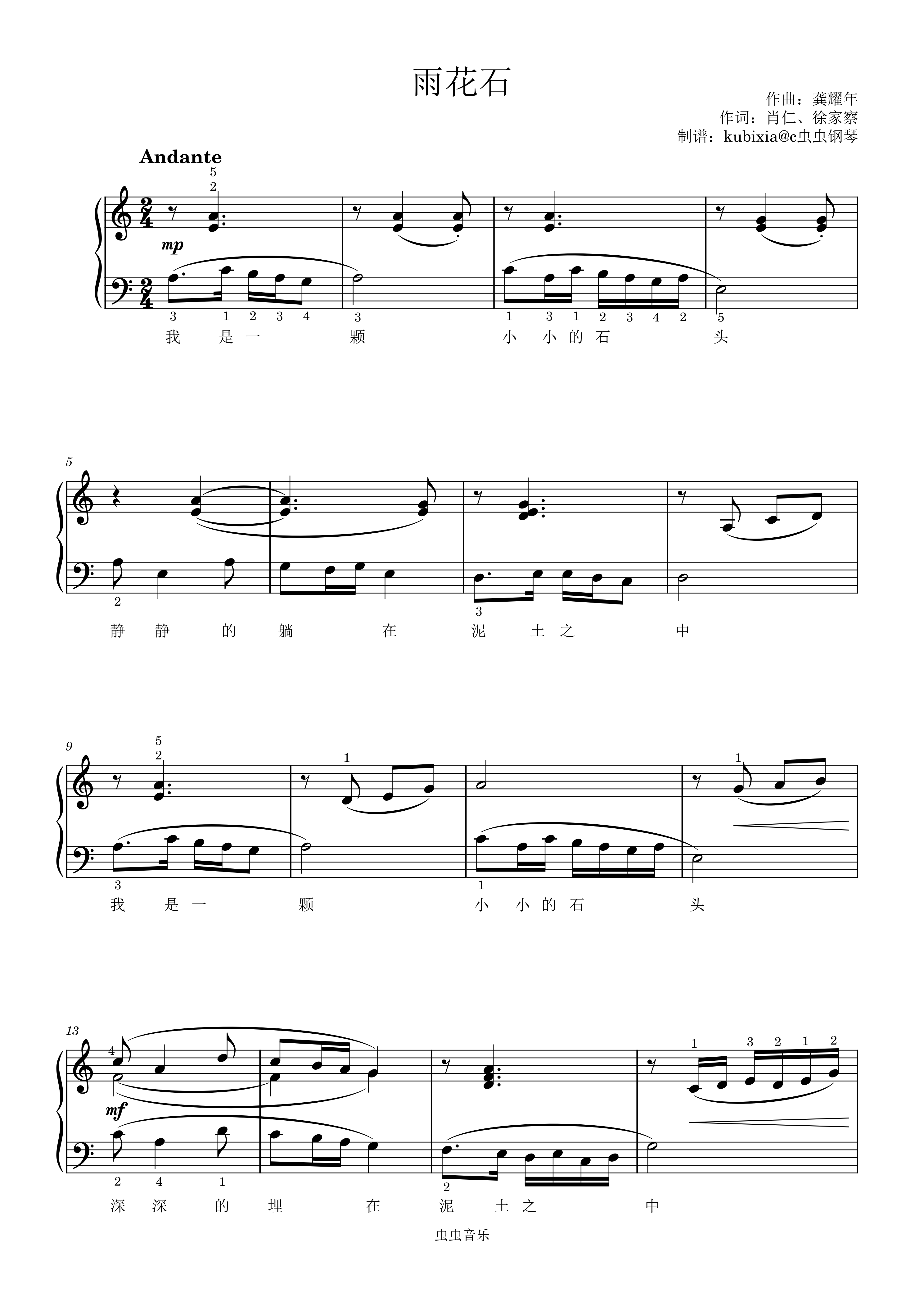 • 雨花石钢琴简谱 C调 数字双手 肖仁/徐家寮